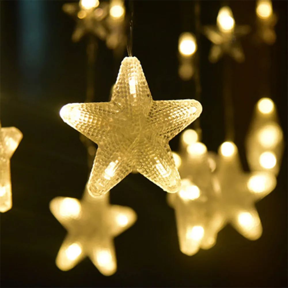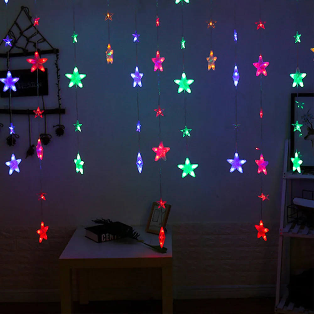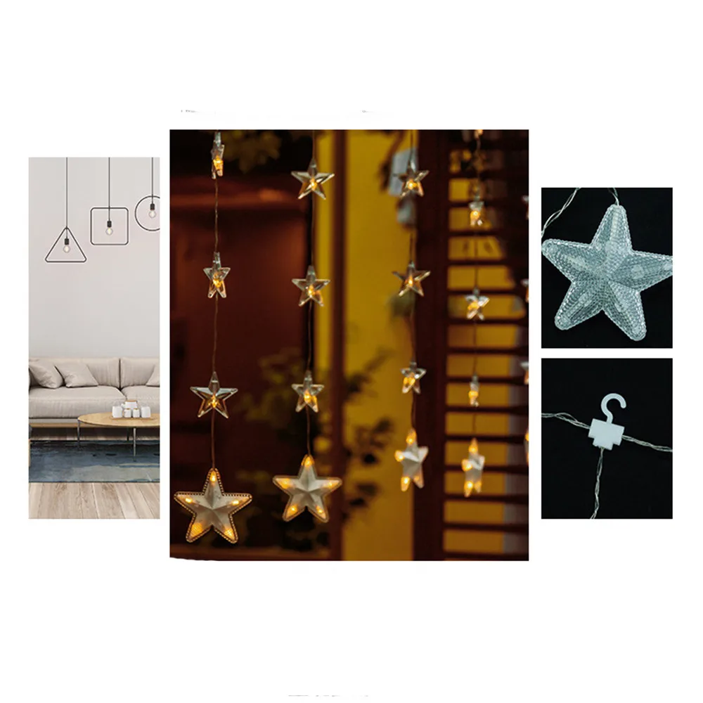 Звездные занавески, 40 звезд, огни, оконные гирлянды, заглушки, гирлянды для штор