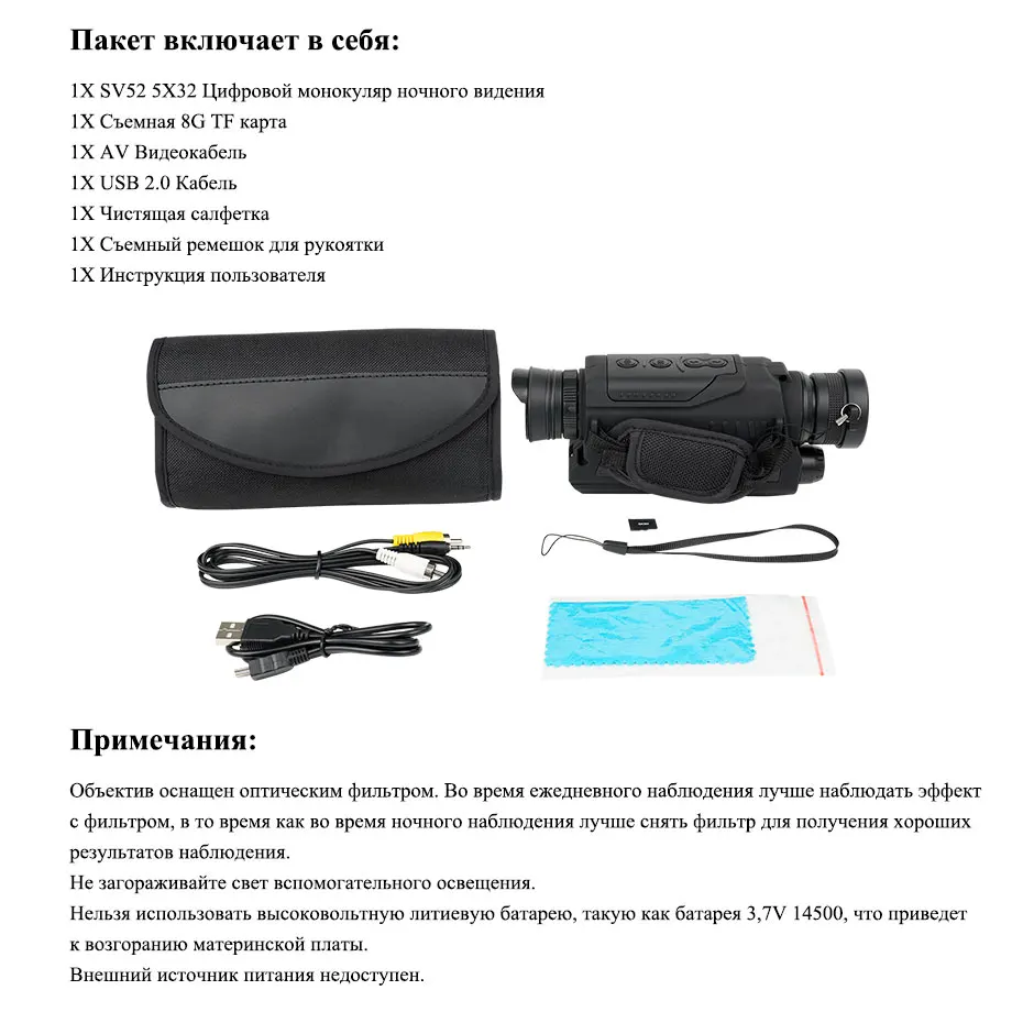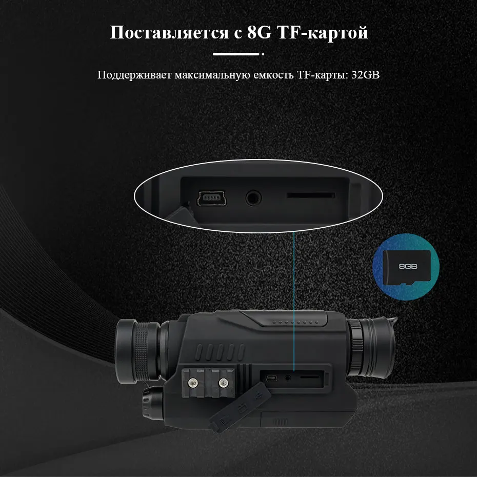 Как уже было указано выше, Монокуляр ночного видения часто используется в ходе следственных действий, безопасности и других случаев, что очень важно, поэтому этот монокуляр ночного видения имеет функцию камеры и видео, которые могут быть легко благодаря TF-карты.