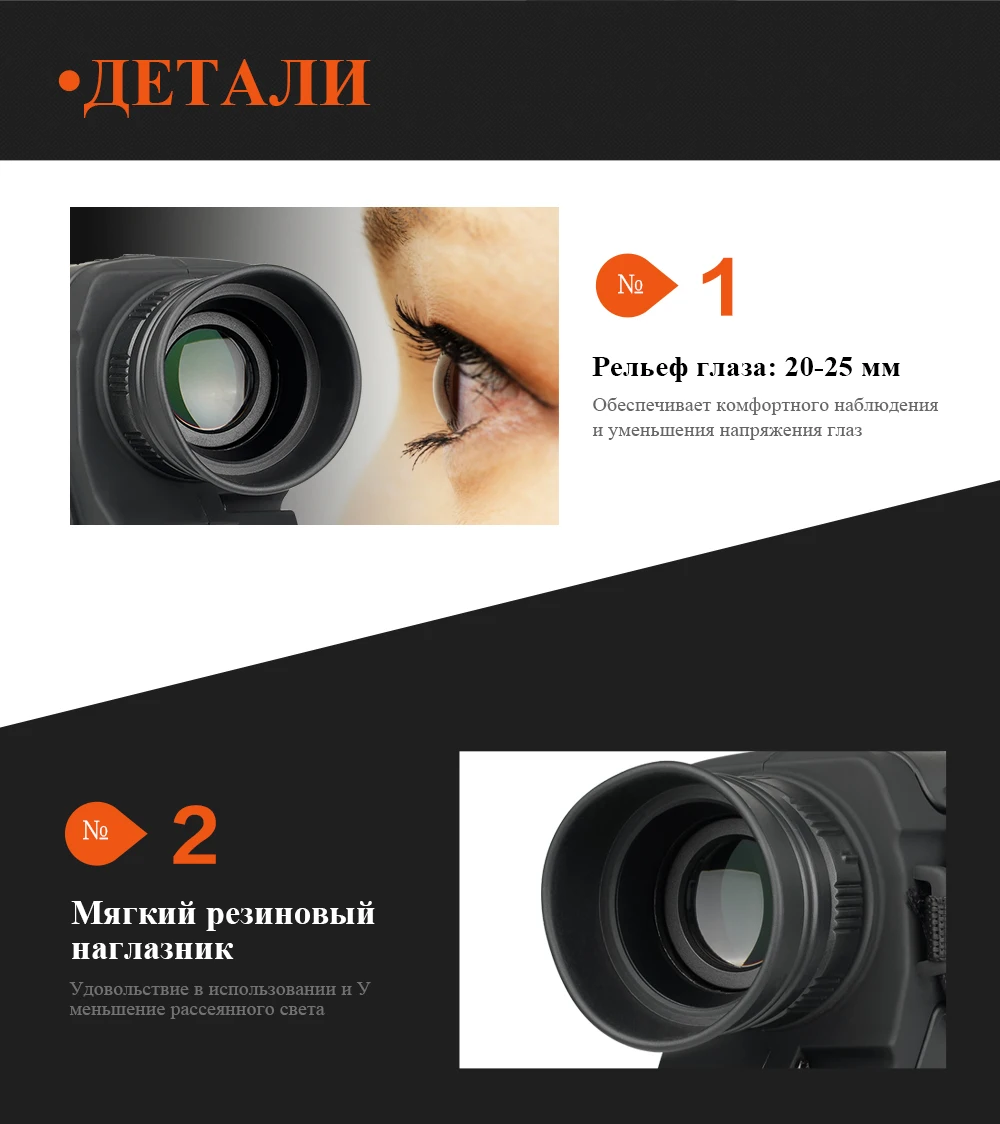 Этот монокуляр является лучшим вспомогательным инструментом для расширения человеческого зрения. В условиях слабого освещения расстояние наблюдения бесконечно. Впотьмах расстояние наблюдения может достигать 200 метров.