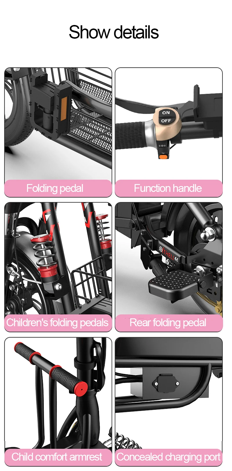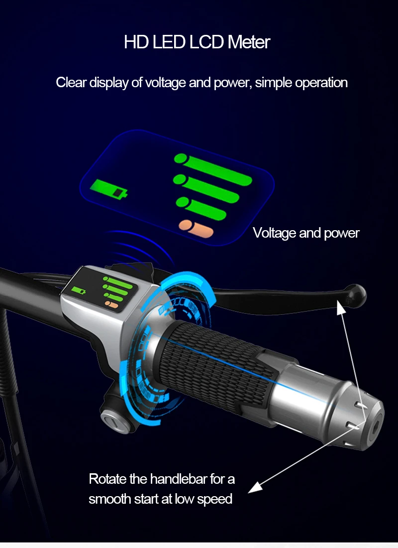 * Максимальная скорость: 20-25 км/ч* Максимальный наклон: около 30 °* Батарея: 48v 10Ah.15AH.20AH.25AH и 30AH Батарея* Максимальная мощность: 400 Вт* Перезарядка пробега: 10ah Батарея: 20-25km.15ah Батарея: 30-40km.20ah Батарея: 40-60 км.25ah Батарея: 45-70km.30ah Батарея: 55-80 км.* Максимальная нагрузка: 200 кг* Напряжение зарядки: AC100-240V 50-60 Гц* Режим торможения: передний дисковый тормоз, после расширения тормоза