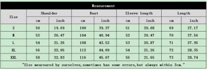 1. Азиатские размеры на 1-2 размера меньше, чем европейские и американские. Выберите больший размер, если ваш размер между двумя размерами. Возможны отклонения в 2-3 см вследствие измерений вручную. 2. Пожалуйста, внимательно проверьте таблицу размеров перед покупкой товара. Если вы не знаете, как выбрать размер, пожалуйста, свяжитесь с нашей службой поддержки клиентов. 3. Как вы знаете, различные компьютеры отображают цвета по-разному, цвет фактического товара может незначительно отличаться от приведенных ниже изображений