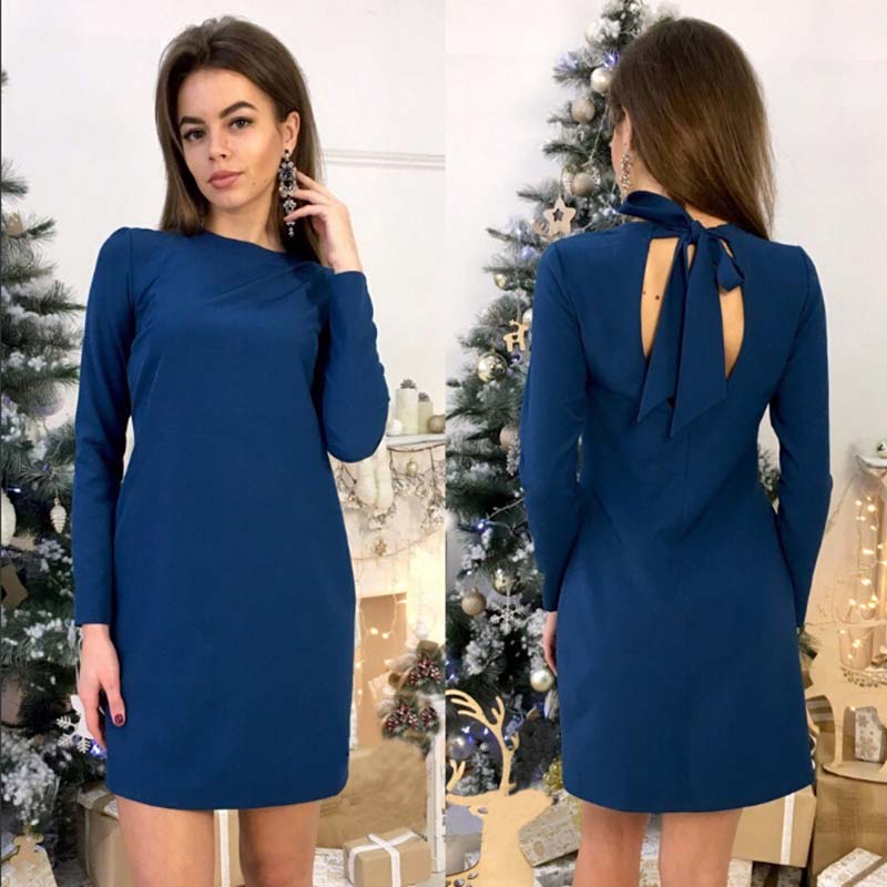 Женское платье, сексуальное вечернее платье с открытой спиной и бантом, прямое модное мини-платье с длинным рукавом, весна-лето 2019