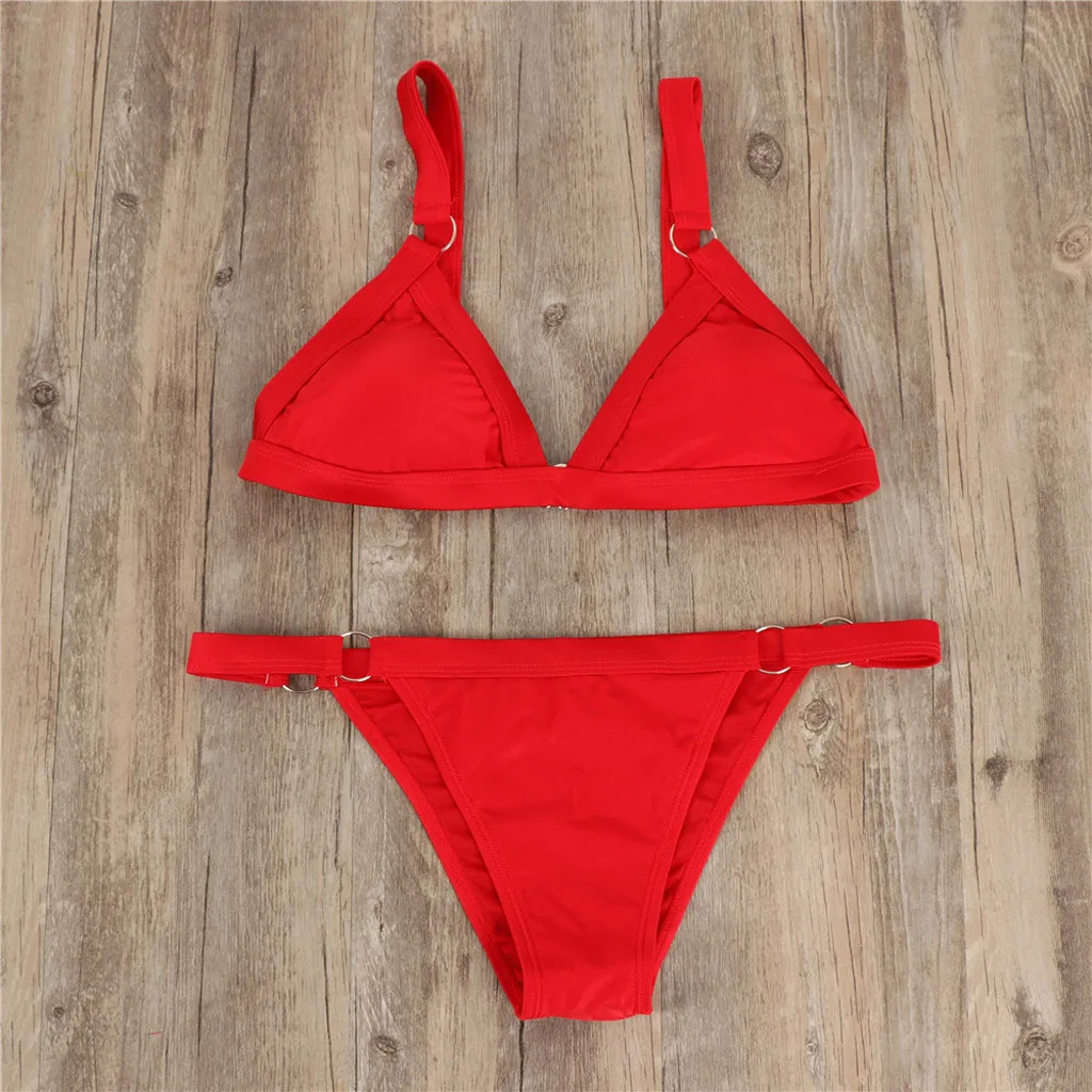 Женское Бандажное бикини с эффектом пуш-ап, бразильский однотонный купальник с заниженной талией, пляжная одежда, купальник, бикини 2019
