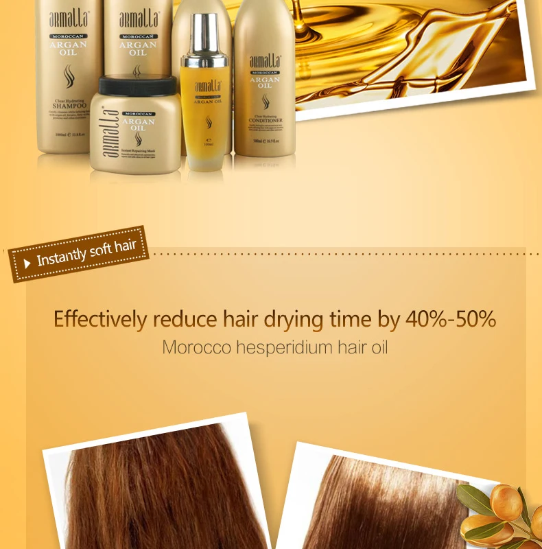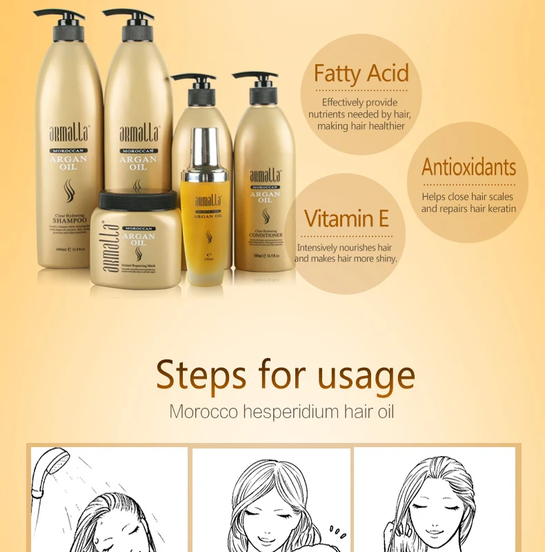 Профессиональный Улучшенный шампунь Armalla 500 мл с марокканским маслом + кондиционер 500 мл + маска для волос 500 мл, Ремонтный комплект продуктов с сухим повреждением