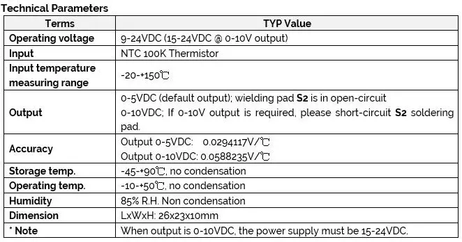 100K NTC в DC конвертер посылка в том числе: 1 партия (2 шт.) x оригинальный 100K NTC в 0-5 В/10 в линейное преобразование модуля.