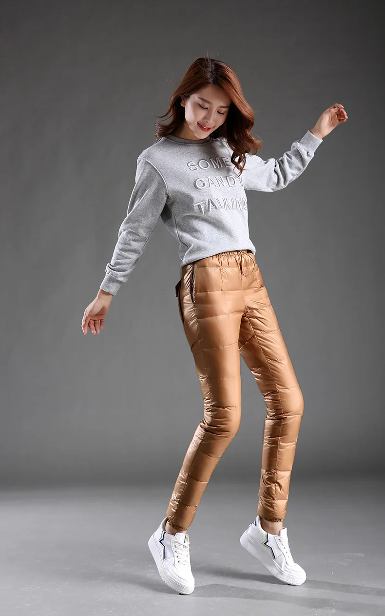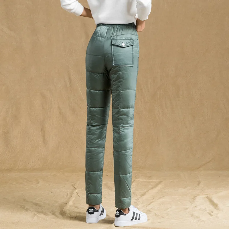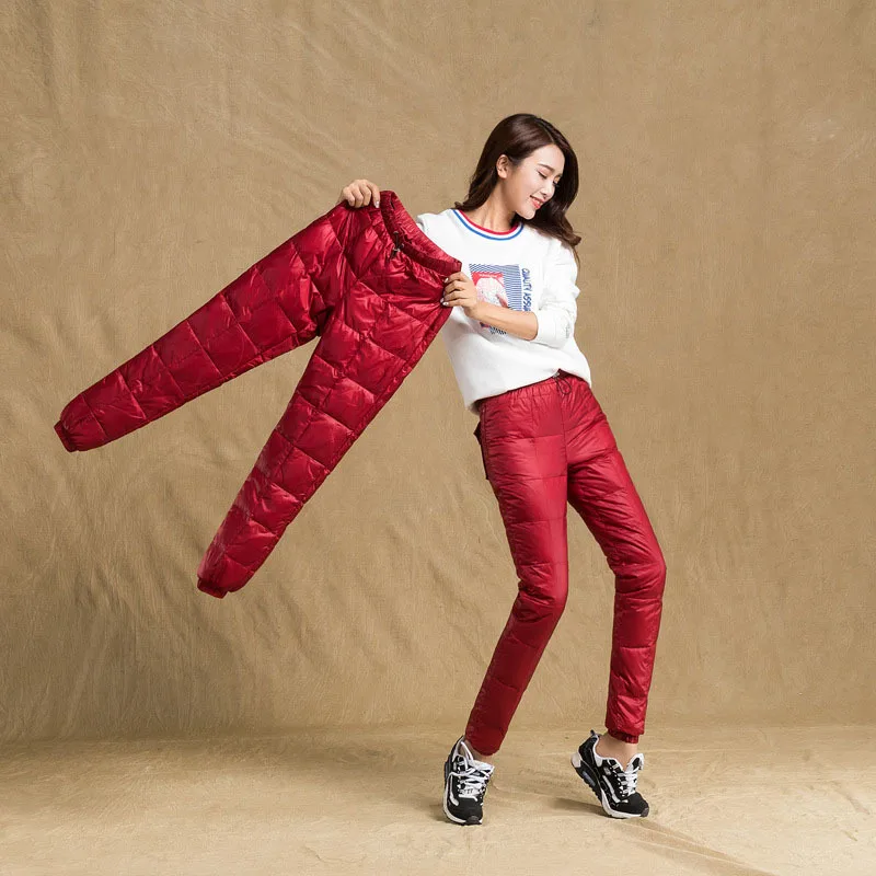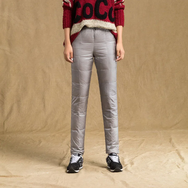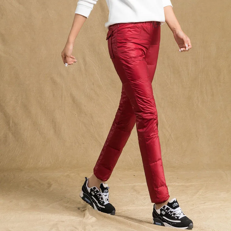 Winter Outdoor Women Elastic Waist Trousers Lady 5 Colors Trekking Walking Working Camping Warm Thick Female Skiing Down Pants