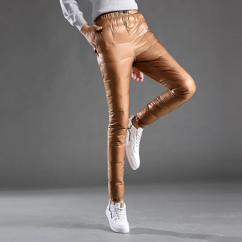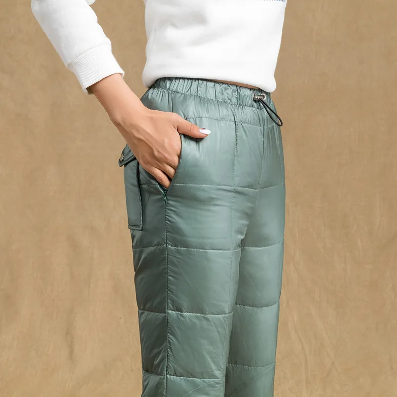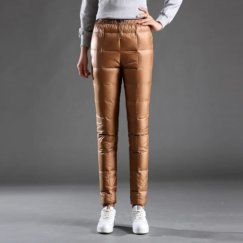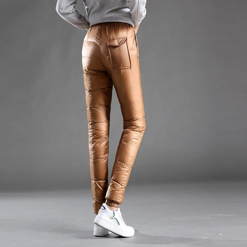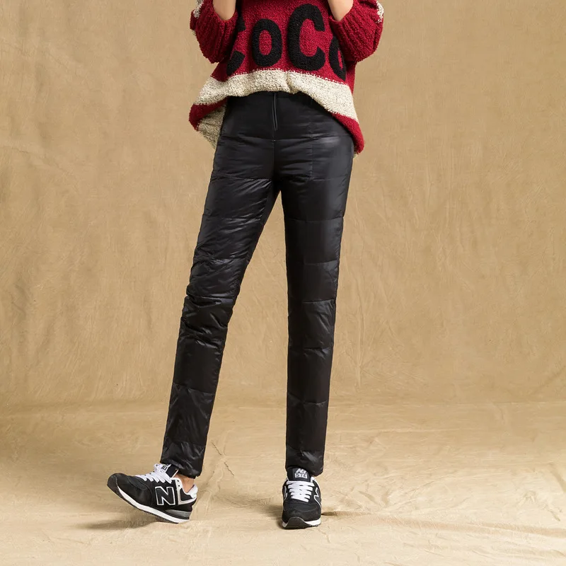 Winter Outdoor Women Elastic Waist Trousers Lady 5 Colors Trekking Walking Working Camping Warm Thick Female Skiing Down Pants