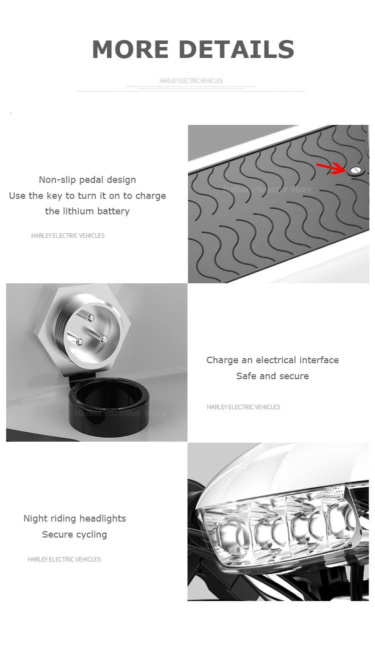Особенности:Передние и задние дисковые тормозные системы, гидравлический амортизатор передняя вилка подвесная система, со светодиодным фонариком три скорости регулировки, функция обратного хода