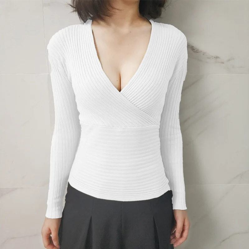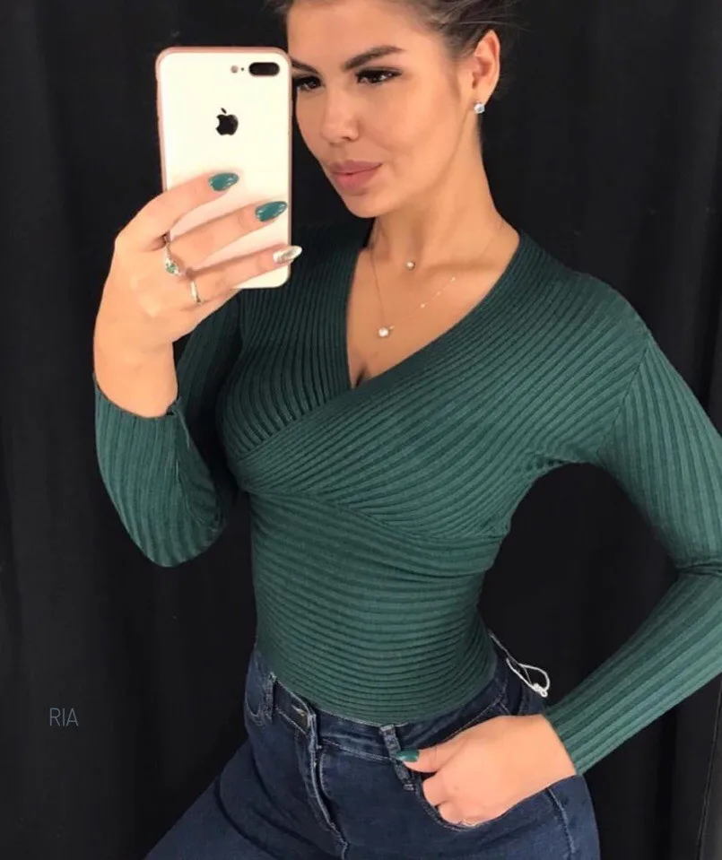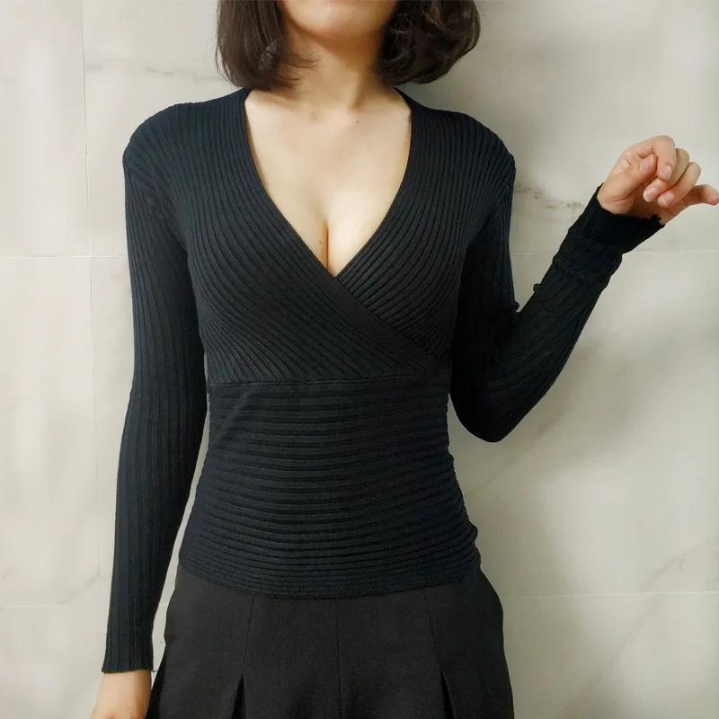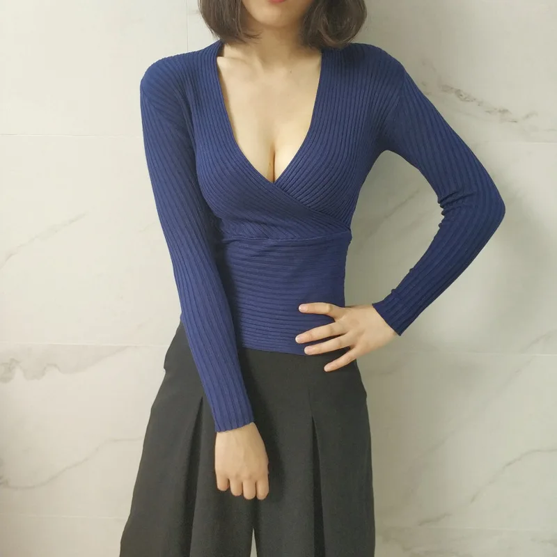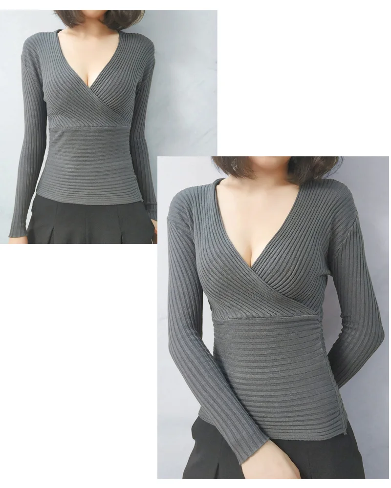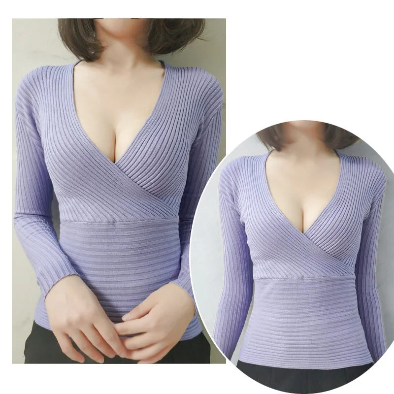 ★ДизайнЭлементы:Полосатый перекрестный бандаж спереди, тонкий длинный рукав, сохраняет тепло, низкий вырез, v-образный вырез делает вас сексуальным, сплошной цвет, идеально подходит для улицы,Заставляет вас чувствовать себя уверенно