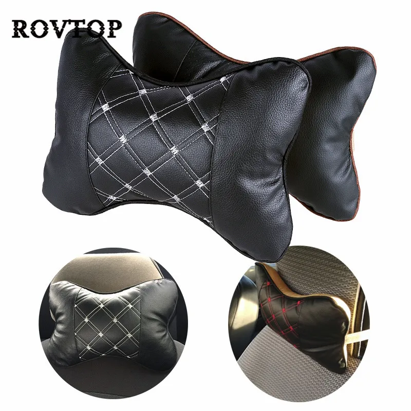 Universal Car Seat Head Neck Rest Pillow, Headrest Bone Shape Pillow Cushion PU Leather Soft and Comfortable for Travelling