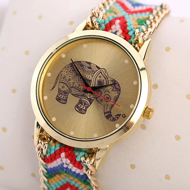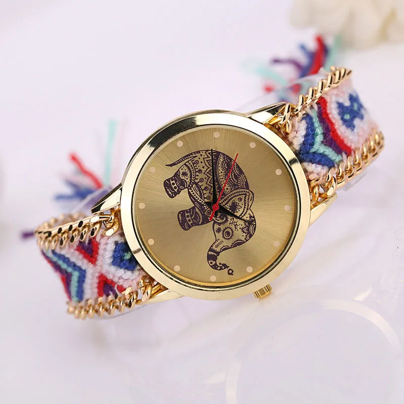 1PC Women Elephant Pattern Weaved Rope Band Bracelet Quartz Dialwatch Gift
