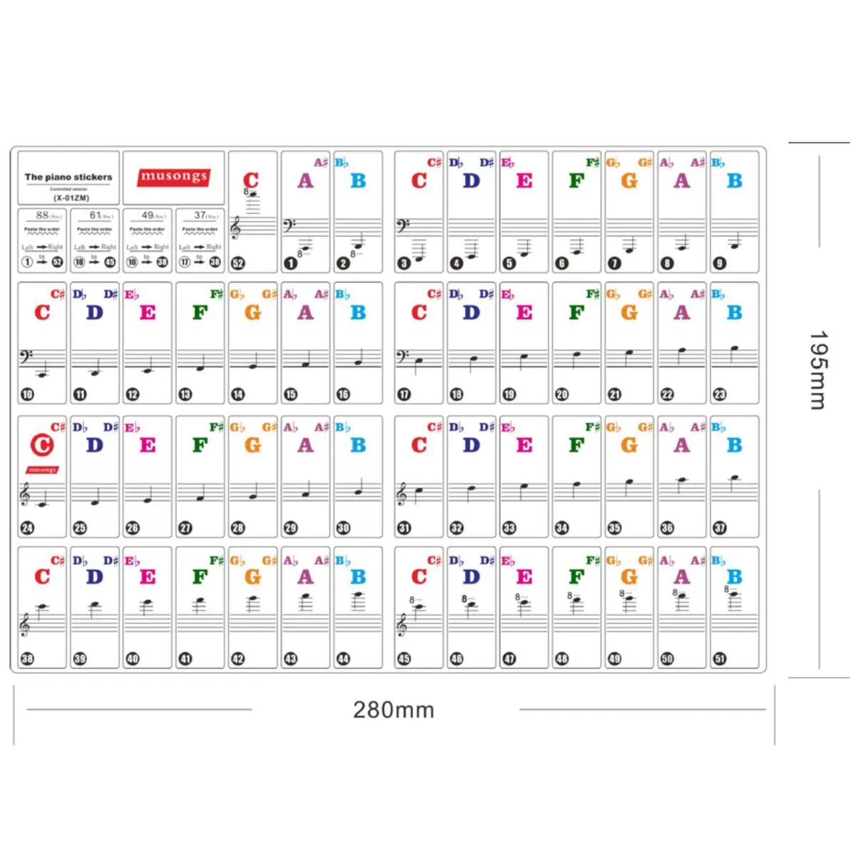 61/88 прозрачный клавиши пианино клавиатура звук название Стикеры пианино электронная клавиатура наклейки для пианино Стикеры s Наклейка в музыкальном стиле знак Примечания