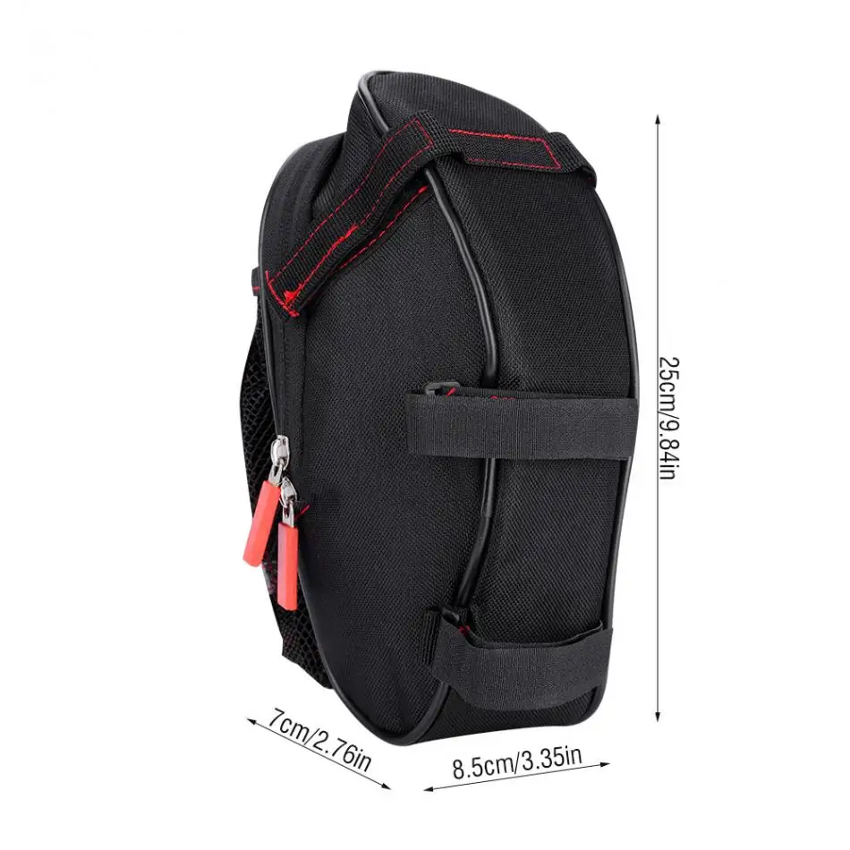 Изготовлен из высококачественного материала, прочный, непромокаемый и прочный. Бесшовный дизайн с двусторонней молнией, защищает ваши изделия от дождя. С двумя пряжками для прочной фиксации на велосипедной Подседельный штырь и woНе беспокойтесь о езде. С дополнительным сетчатым карманом для хранения бутылки с водой. Подходит для владельцев велосипедов и любителей верховой езды, легкий, портативный, полезный.