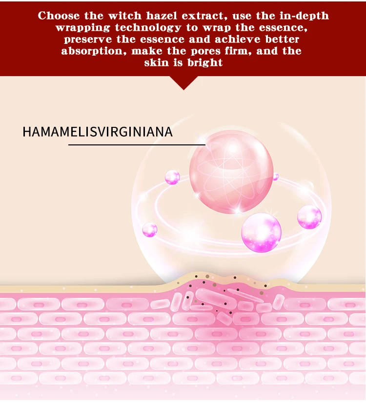 Нежная и влажная легкая текстура, освежает и легко впитывает, содержит гамамелиса и другую мягкую растительную эссенцию, дополняет кожу влагой и питанием, снимает кожу, в то же время, сужает поры, улучшает состояние кожи с большими порами, делает кожу освежающей и чистой.