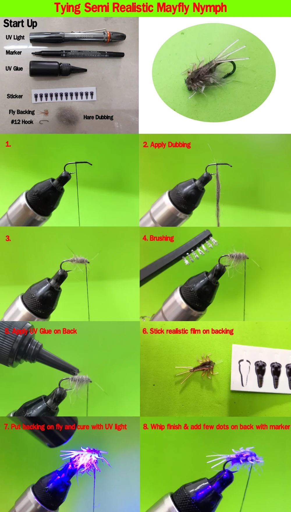 20PCS Realistic Mayfly Nymph Fly Tying Material Trout Fly Fishing Fly Tying for size 12 14 hook