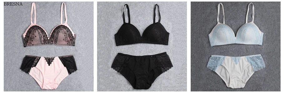 Комплект женского нижнего белья с тонкой чашкой, бюстгальтер без косточек с кружевными вставками, голубой, розовый, черный светильник