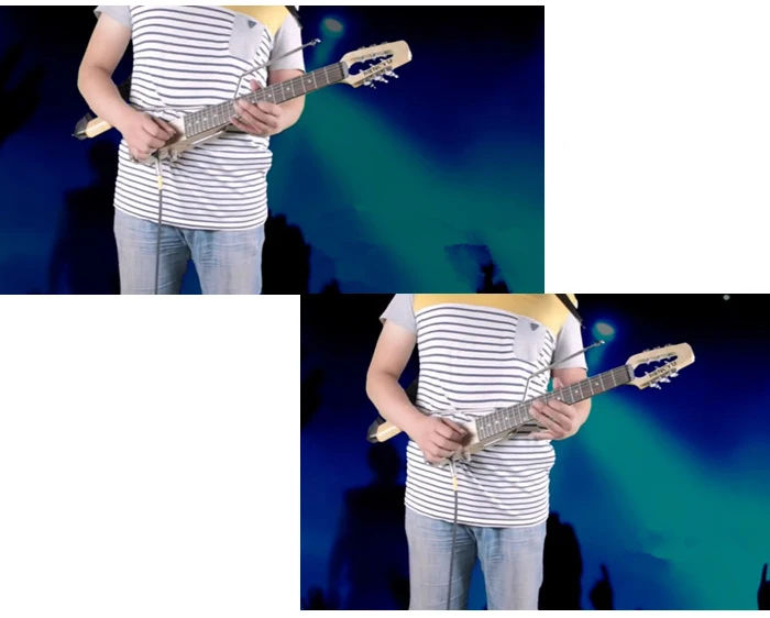 Особенности: Шесть ниток и 22 класса Отличная гитара для тренировки рук и ускорения навыков гитары. Это компактный размер и легкий вес, Легко носить с собой, вы можете доставить его туда, куда хотите. Есть голоса, подключаются колонки и наушники Прочный в использовании, эргономичный дизайн: подходит и позволяет с комфортом тренироваться Улучшая ловкость пальцев и ускоряя процесс игры на гитаре