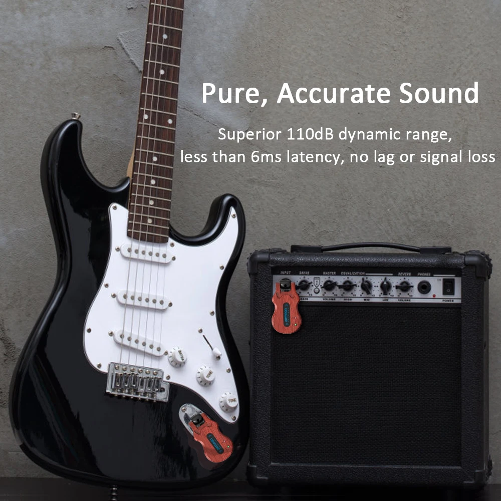 Беспроводная гитарная система ammoon (передатчик + приемник) с уникальным внешним видом создана по мотивам винтажной гитары гитара из древесины вишни. Обладает широкой частотной характеристикой 10 Гц-22 кГц, передачей несжатого сигнала 24 бит/48 кГц, доступен для большинства электрических музыкальных инструментов, таких как электрические гитары, бас, электроакустические гитары и т. д. Подключи и работай, без проблем с подключением длинных кабелей. С нашей беспроводной гитарной системой ammoon вы можете наслаждаться своим тоном гитары в удивительных и превосходных деталях на гитарном усилителе в любое время в любом месте.