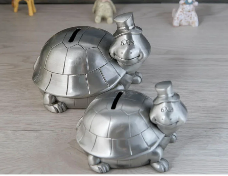 Номер товара; PB040 Наименование товара; Креативакартун черепаха копилка Материал: олово из металлического сплава Цвет; Античный оловянный цвет Размеры; Небольшой общей length11cm, ширина 9,5 см, высота 7,5 см Большая суммарная length13cm, ширина 11,5 см, высота 7,5 см Особенность: Креативный дизайн черепахи из мультфильма, металлический материал, около 100 монет можно хранить в небольшом количестве, 300 штук хранения монет большого размера