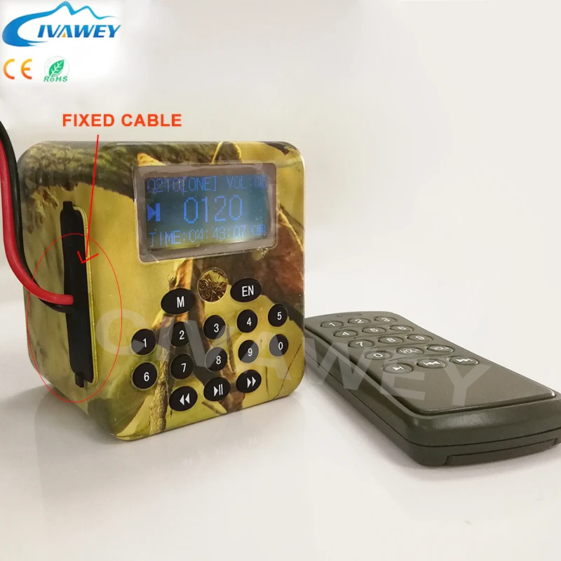 Пожалуйста, обратите внимание: (Как светильник съемки, угол и цвет дисплеев, физический и фотографии, возможно, некоторые различия! Пожалуйста, преобладайте в своем роде)1. Встроенный динамик мощностью 50 Вт, работающий до 150 дБ. Камуфляжный цвет, с внешней антенной2. Цифровая клавиатура и 15 клавиш дистанционного управления3,32 диапазон регулировки громкости.4. Громкий голос может быть услышан в пределах 2 км в открытой местности, когда сигнал трансимитт в хорошем состоянии;5. Встроенный 210 звуков птиц6. Дальность действия пульта: 300 ~ 500 метров7. Удаленное кодирование по одному8. Встроенный таймер для установки времени воспроизведения и воспроизведения песен9. Включение питания: повторное воспроизведение10. ЖК-дисплей11. Формат MP3 с очень четким звуковым выходом13. Звуки птиц могут быть добавлены пользователем к устройству через USB14. Устройство устойчиво к песку и водонепроницаемость15. Питание от 12 В герметичного типа батареи (не входят в комплект)Мощность