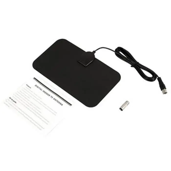 Item: Antenna Material: Plastic Color: Black Model: HB08 Impedence : 75 Ω LNA Gain : 30dB Frequency Range: 174~240Hz, 470~862 MHz Reception Range: 60-80 Miles High Performance Coax Cable : 1.5C-2V / Black L=13.2FT Voltage : 5V Power supply connector: USB Size: 21 x 12 x 0.6mm (L x W x H) Occasion: Anywhere You Need Feature: Stylish design with a distinctive look. Antenna Specially designed for receiving digital TV signal. 60-80 miles receiving range to receive signals from broadcast towers. Package Content: 1 x Antenna 1 x Signal Amplifier 1 x F to IEC Converter 1 x Instruction Manual Note: Due to the difference between different monitors, the picture may not reflect the actual color of the item.