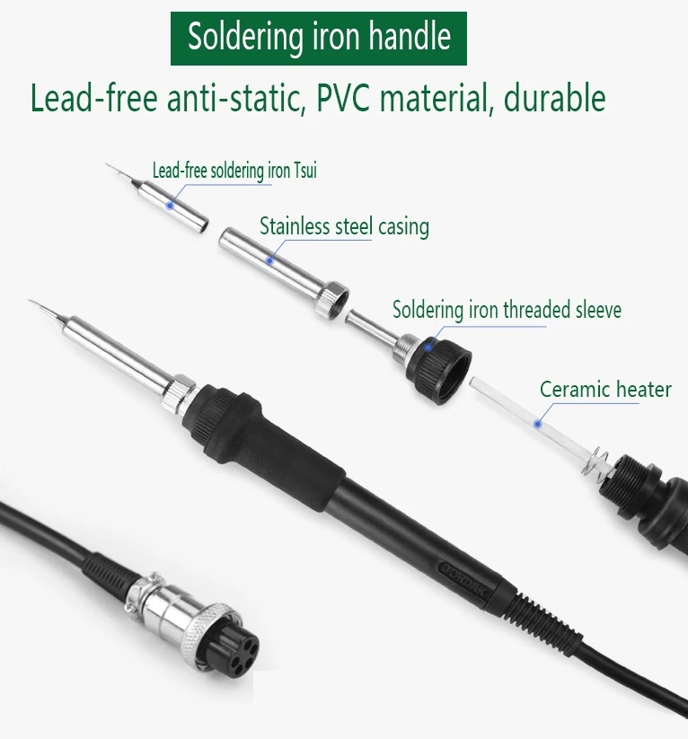Характеристики продукта 1. Многофункциональная интегрированная система технического обслуживания демонтажа в сочетании. Паяльная станция и паяльная станция. 2. Ядро всей машины контролируется одним и микроволновым чипом, чтобы убедиться в точности температуры и стабильности паяльной станции и паяльной станции; Не просто в сочетании с двумя оборудованиями. 3. Четкий цифровой дисплей текущей рабочей температуры и условий 4. Температура паяльной станции и паяльной станции постоянно регулируется цифровыми кнопками для удовлетворения потребностей в различных рабочих местах. 5. Две станции могут работать отдельно. 6. Функция интуитивной индикации неисправности. Пистолет горячего воздуха Рабочее напряжение: ac220в ± 10% 50 Гц Выходная мощность: 500 Вт Диапазон температур: 100 °C ~ 500 °C Стабильность температуры: ± 5 °C Поток воздуха: 120 л/мин (макс.) Паяльник Рабочее напряжение: 220 В переменного тока 50 Гц Выходная мощность: 50 Вт Диапазон температур: 200 °C-480 °C Стабильность температуры: ± 2 °C (статическая)