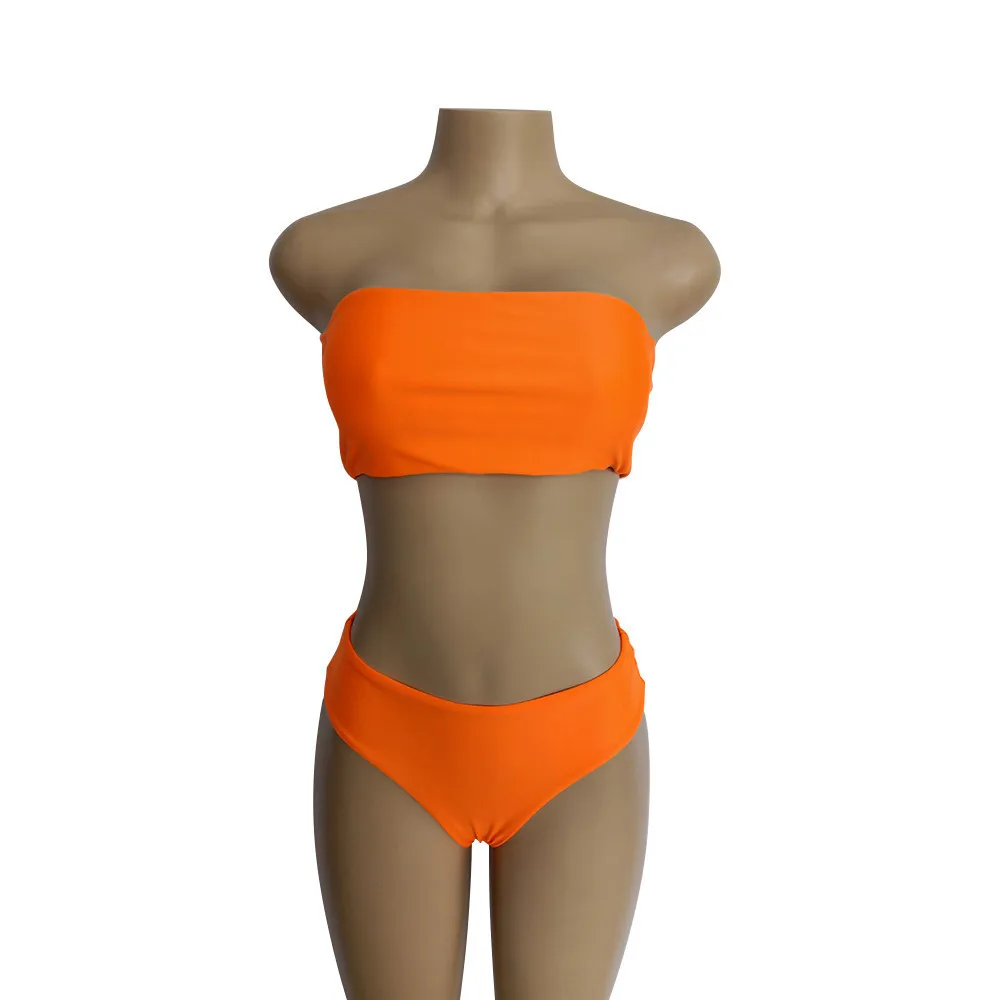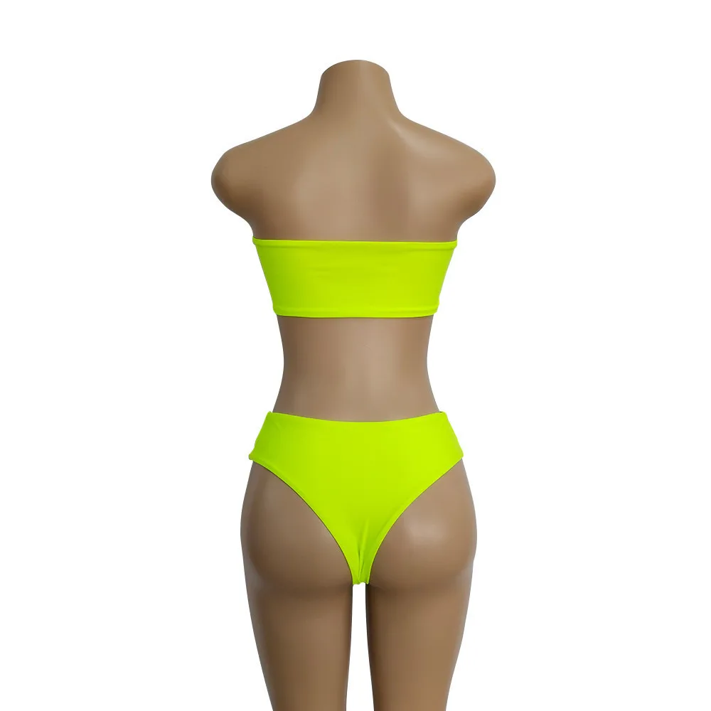 Женский комплект бикини бандо с высокой талией, купальник, многоцветная пляжная одежда, женский сексуальный купальник из двух частей, бикини с подкладкой, пляжная одежда для женщин