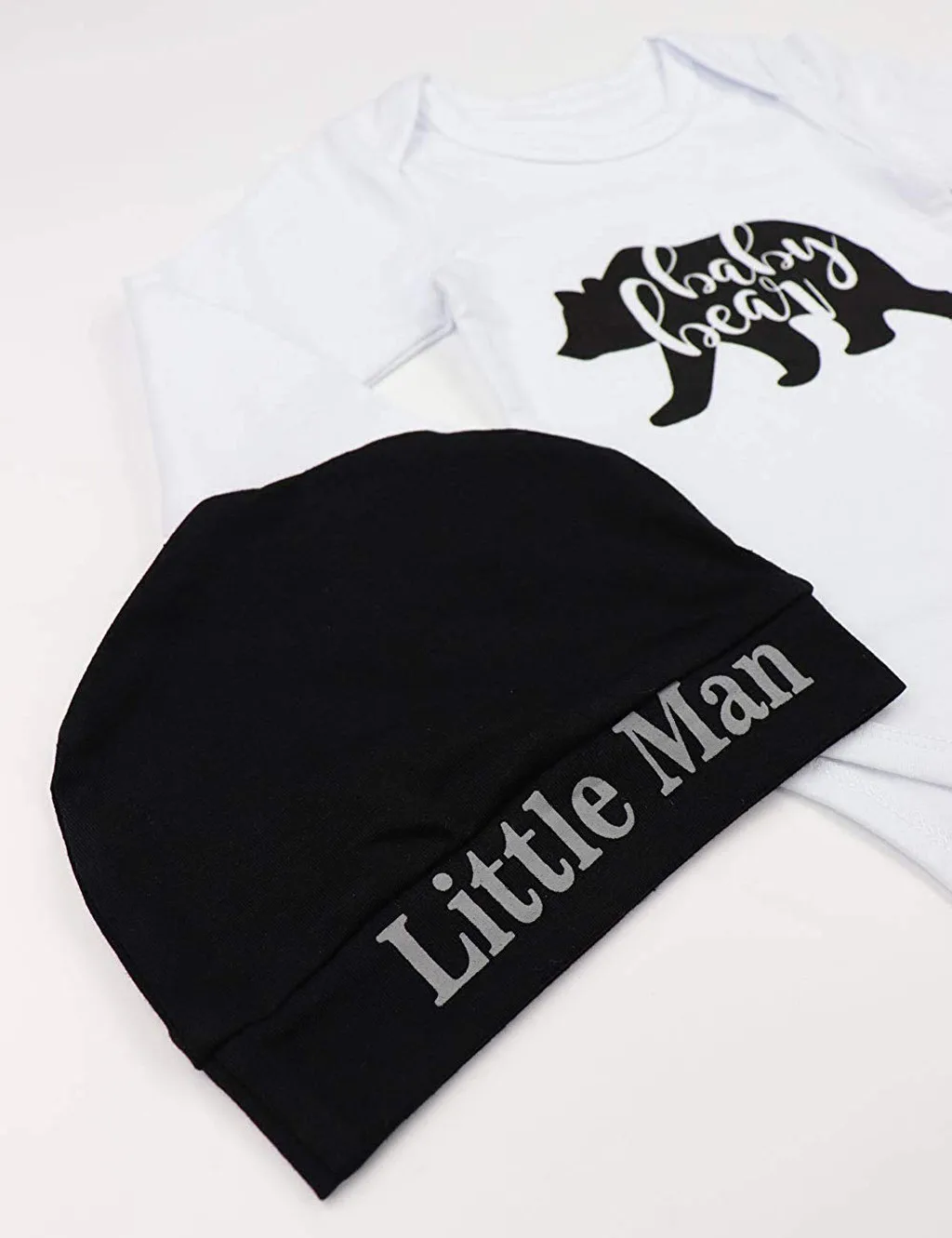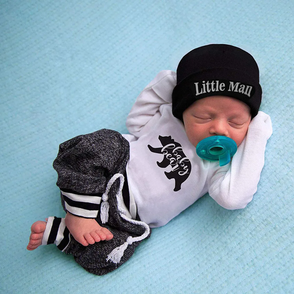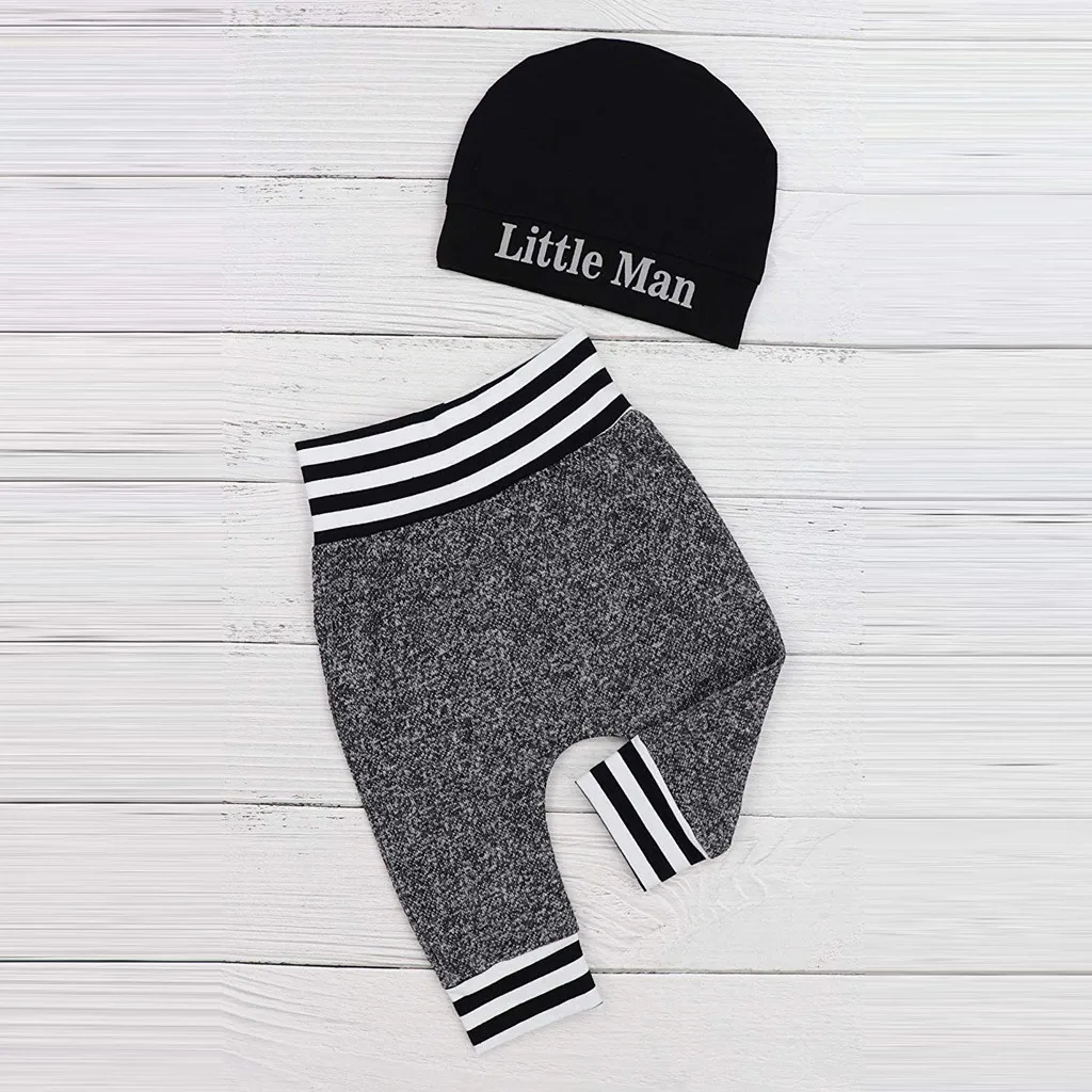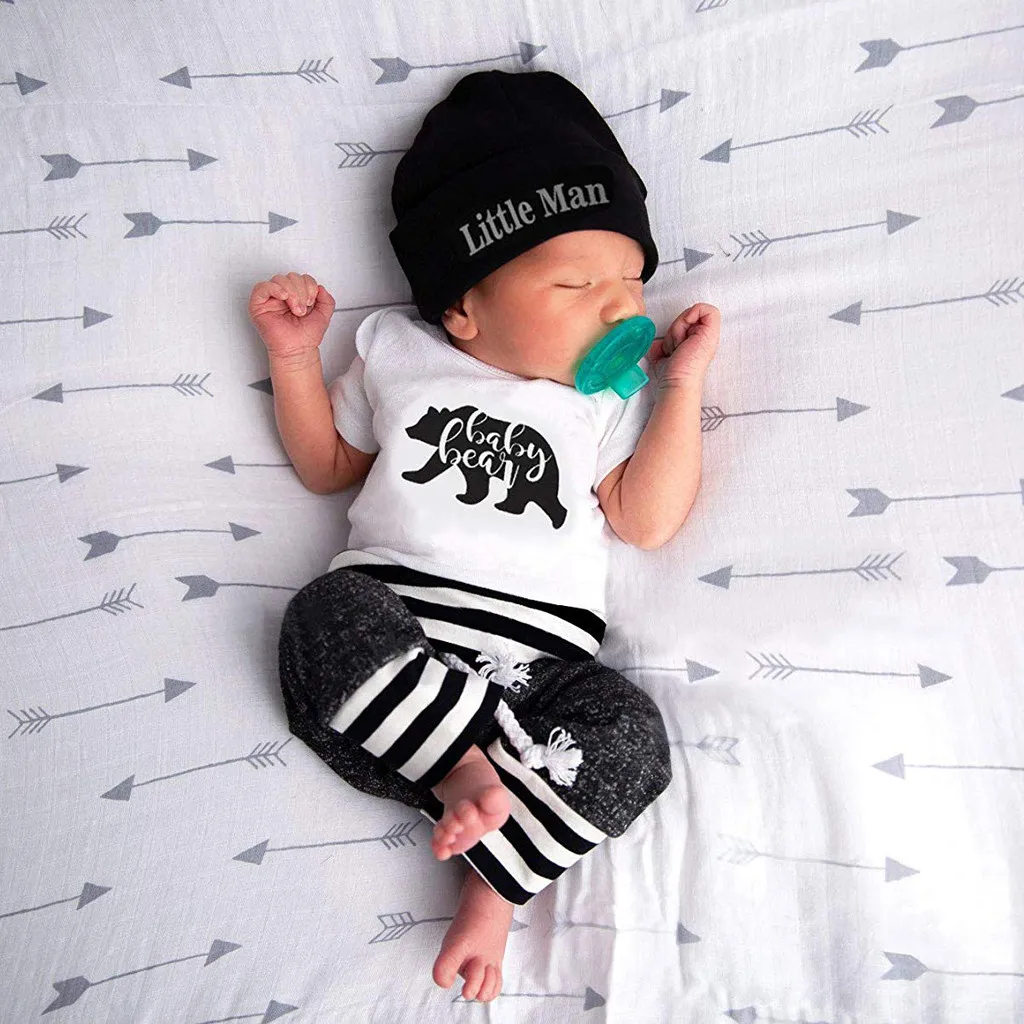 Newborn Baby Boy Girl Clothes Letter Print Romper+Pants+Hat 3PCS Outfits Set