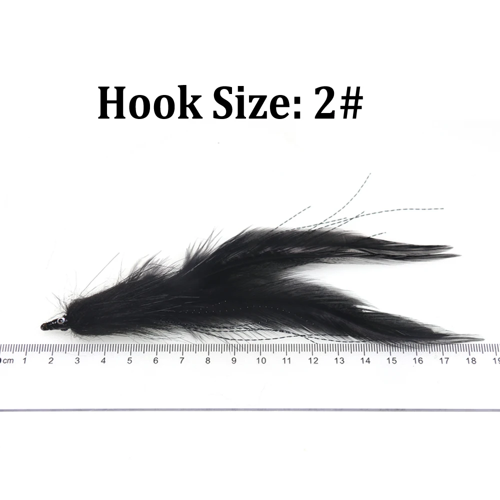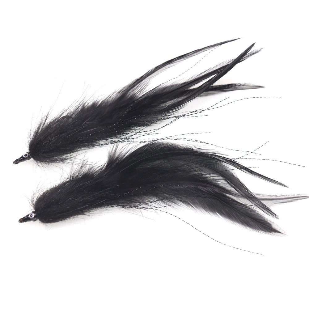 2 шт. Размер 2 # обманщик черный морской мух Щука Стример Летать для нахлыстом рыбалки мух