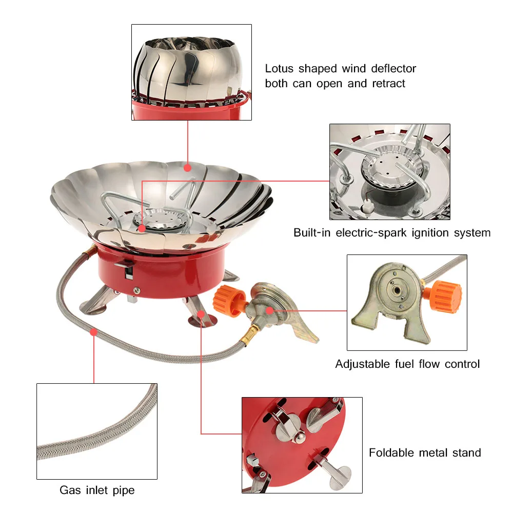Эта портативная ветрозащитная уличная плита с бутаном совместима с длинным газовым картриджем. Встроенная система электрического зажигания и регулируемый контроль расхода топлива, безопасная сборка клапана и прочный топливный шланг, безопасный и удобный. Отлично подходит для походов, пеших прогулок, пеших прогулок и любых других мероприятий на свежем воздухе.