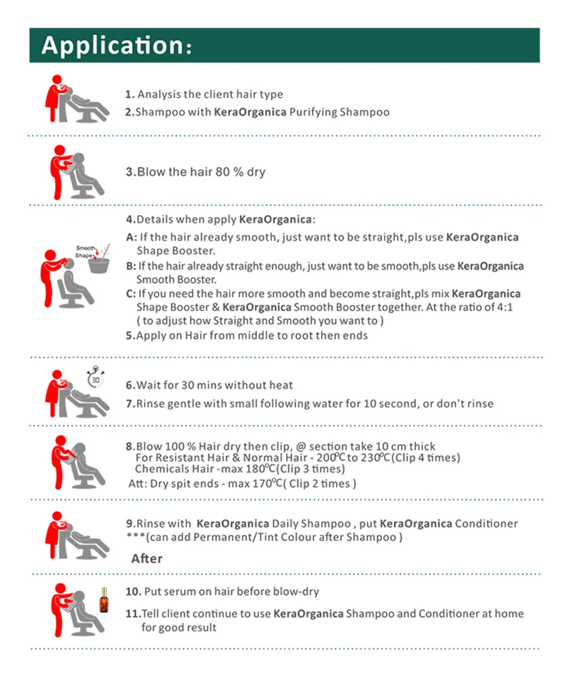 C: если клиенту необходим эффект гладких и прямых волос, рекомендуется смешать форму и гладкий Кератин для использования в соотношении 4: 1 (4 формы, 1 Гладкий). Отрегулируйте эту пропорцию в соответствии с качеством и потребностями ваших волос