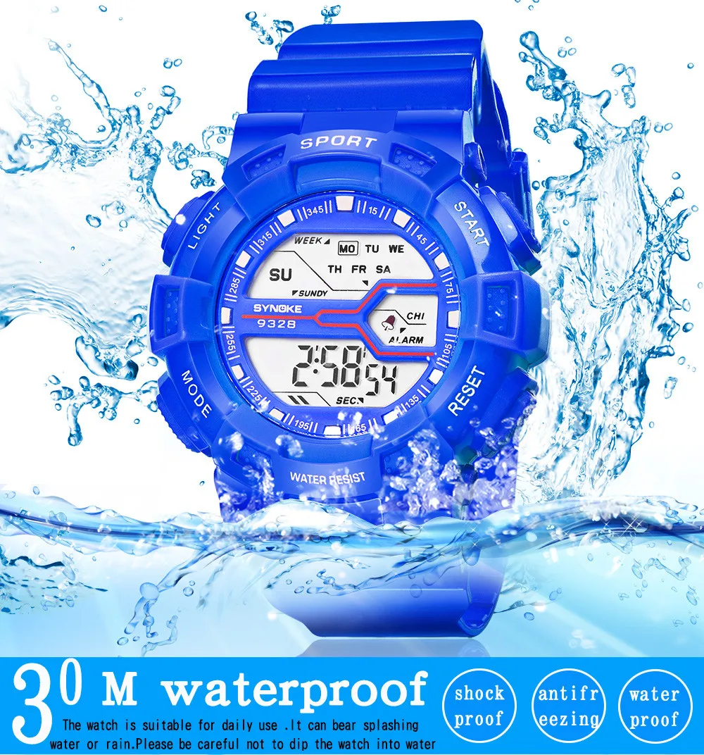 SYNOKE модные повседневные брендовые Детские студенческие часы для мальчиков водонепроницаемые спортивные часы светодиодные цифровые часы наручные часы с датой bob esponja