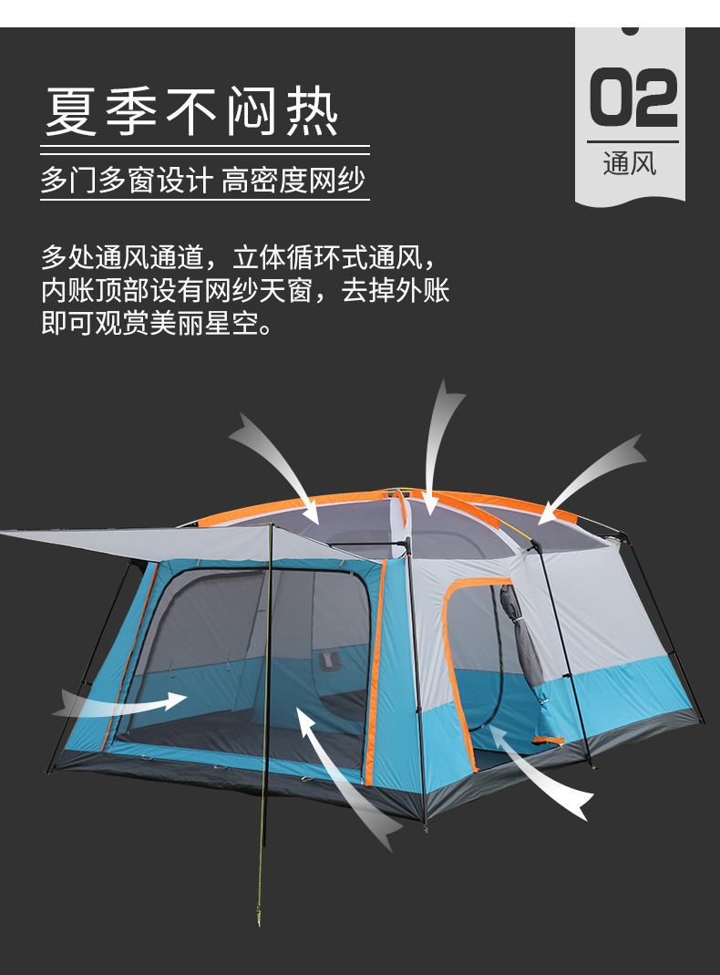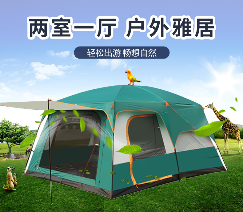 Это простая двухэтажная палатка для 5-12 человек. Пожалуйста, укажите цвет при выборе посылка, спасибо!