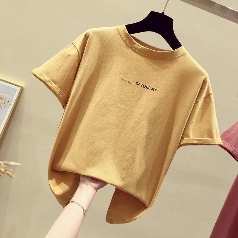 Летняя Свободная Женская футболка из хлопка; повседневная трикотажная футболка