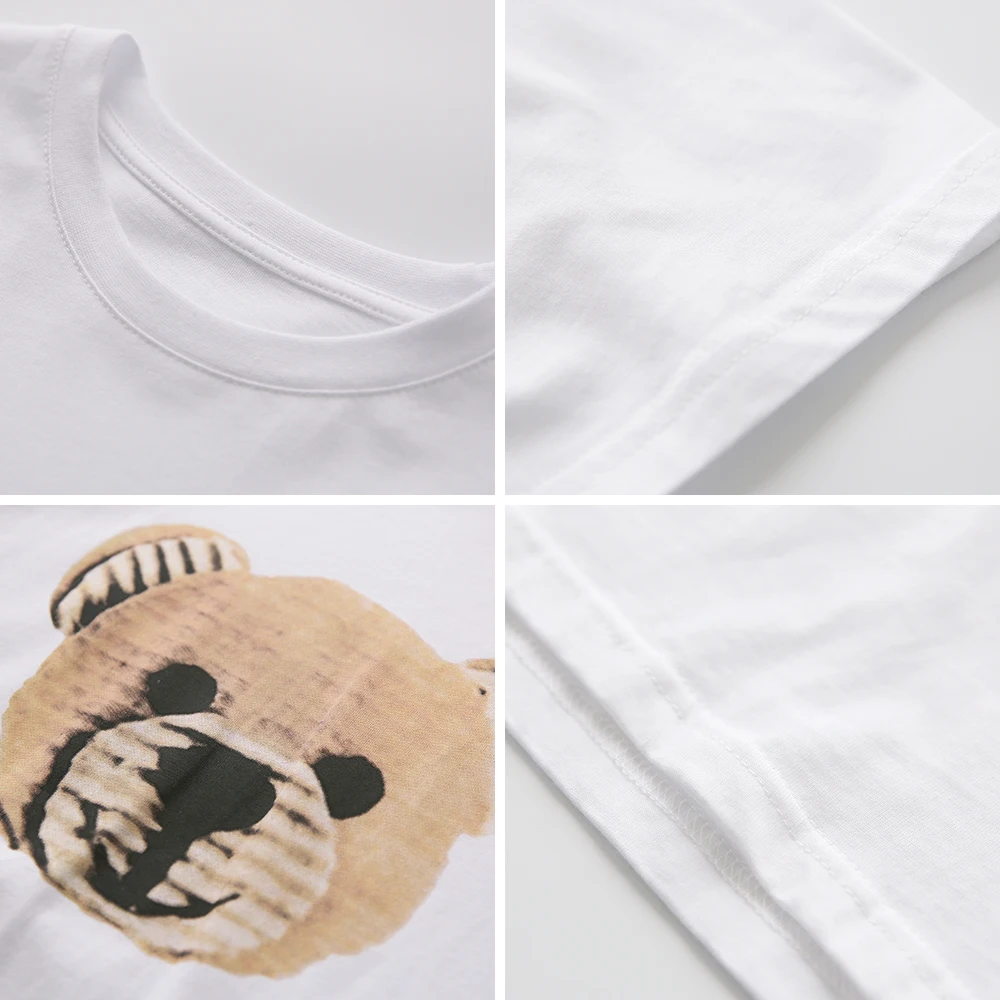 Популярная белая футболка с забавным принтом Ins для лета, популярная Футболка с принтом медведя, хлопковая Футболка с задней частью, новинка, женская футболка Harajuku