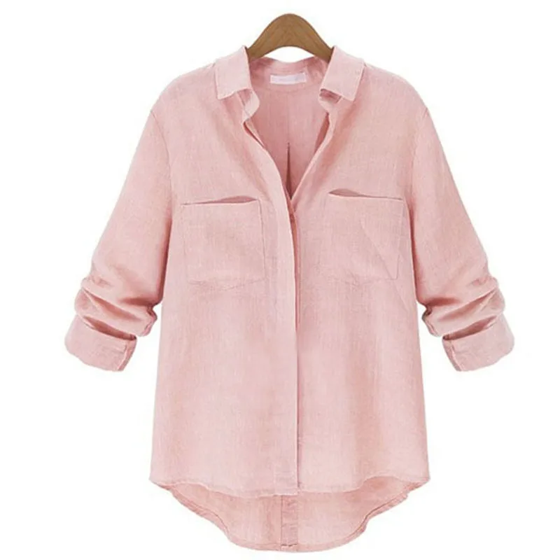 * Описание товара: модная женская Повседневная рубашка с длинными рукавами и отворотом, топы из хлопка и льна, OL Блузка