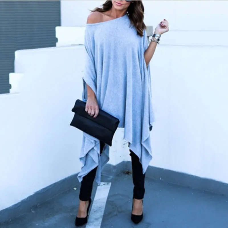 * Описание товара: женская Свободная Повседневная блуза с рукавом летучая мышь на одно плечо, топы размера плюс