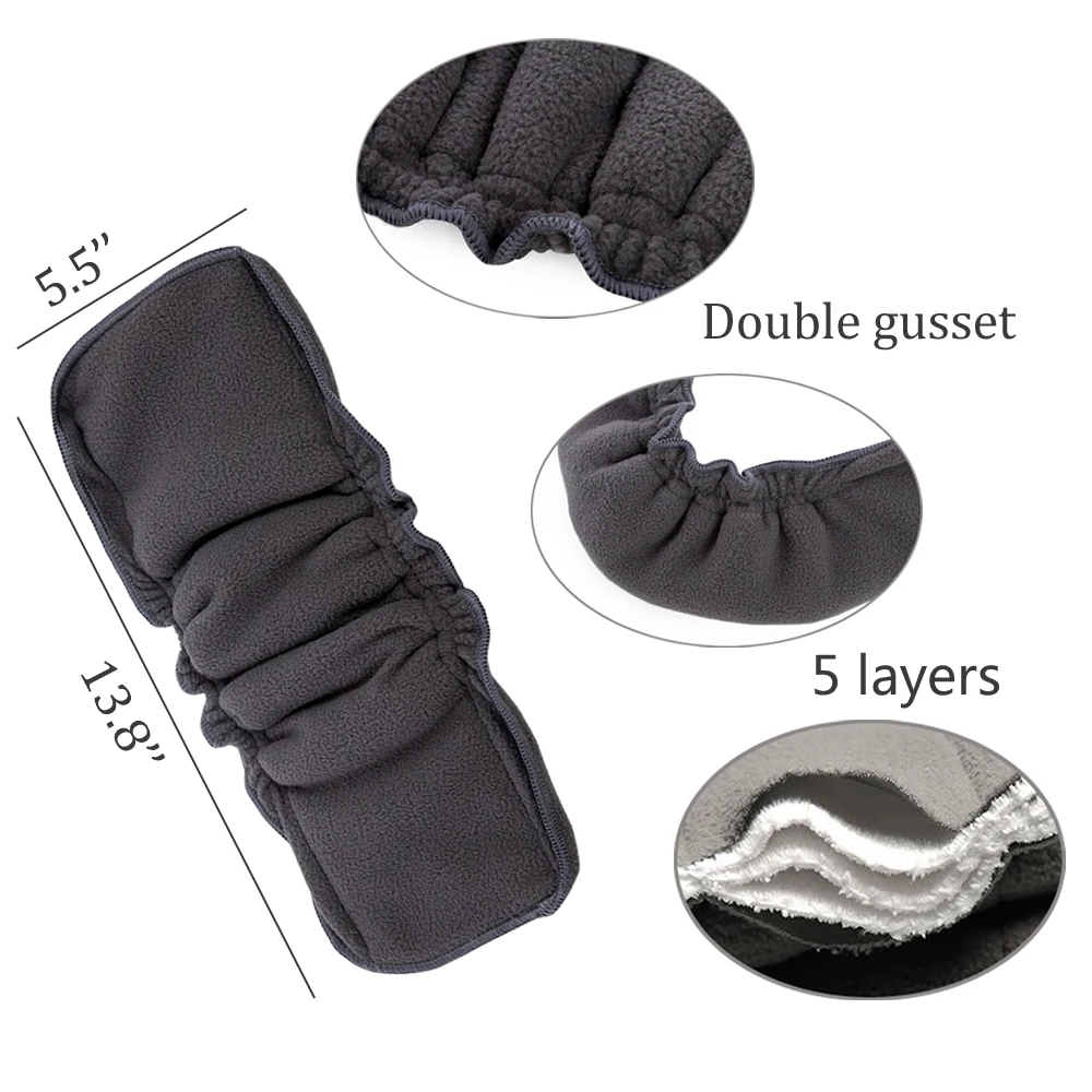 3. Лучшая впитываемость: Эти вкладыши для подгузников многоразовые и полностью машинная стирка, и они станут более абсорбирующими, когда их постирают.