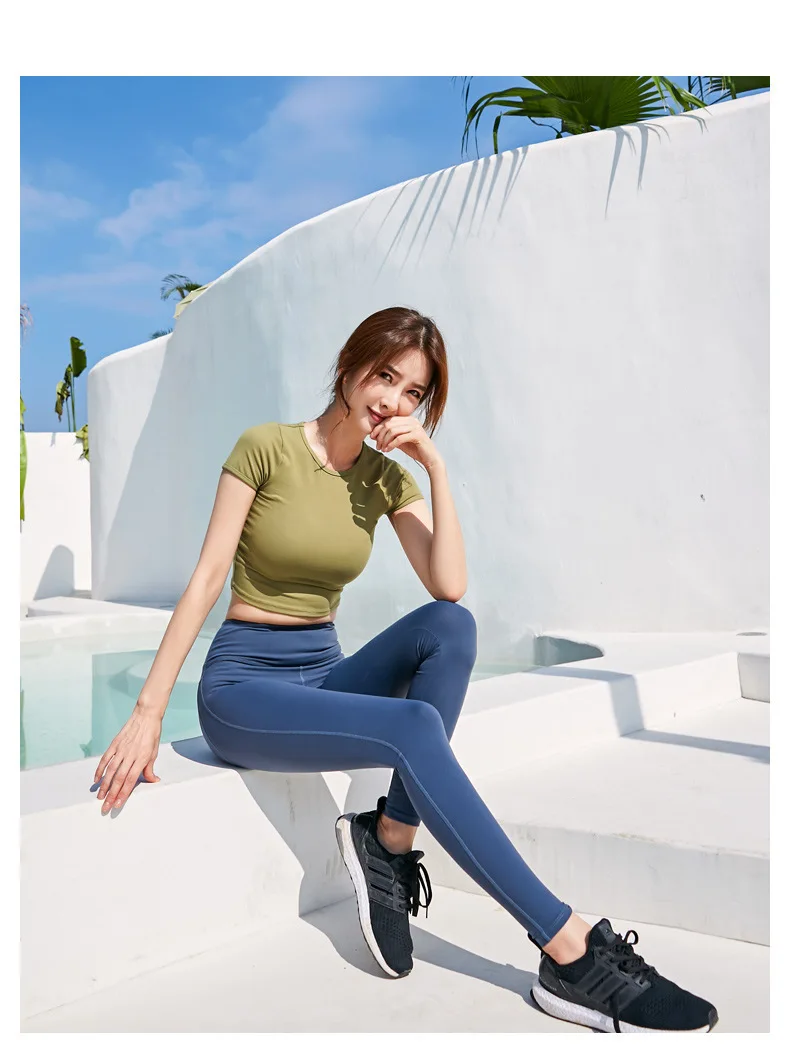 Классический укороченный топ с круглым вырезом и обтягивающие эластичные леггинсы, разработанные для самых модных и лучших представлений во время занятий спортом