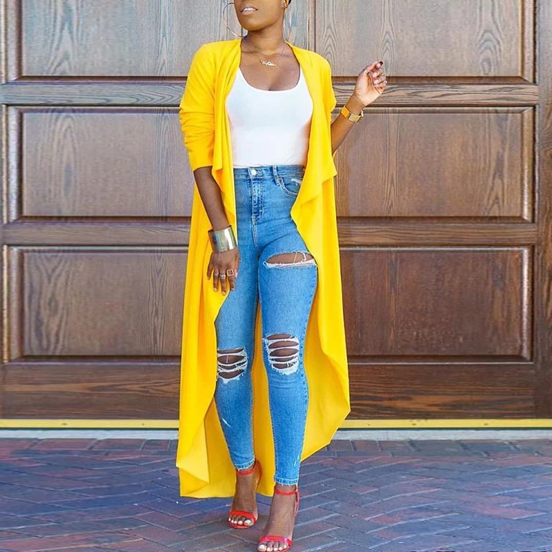 * Описание товара:Новые осенние женские свободные летучая мышь нерегулярные с длинным рукавом пальто Топы длинный кардиган