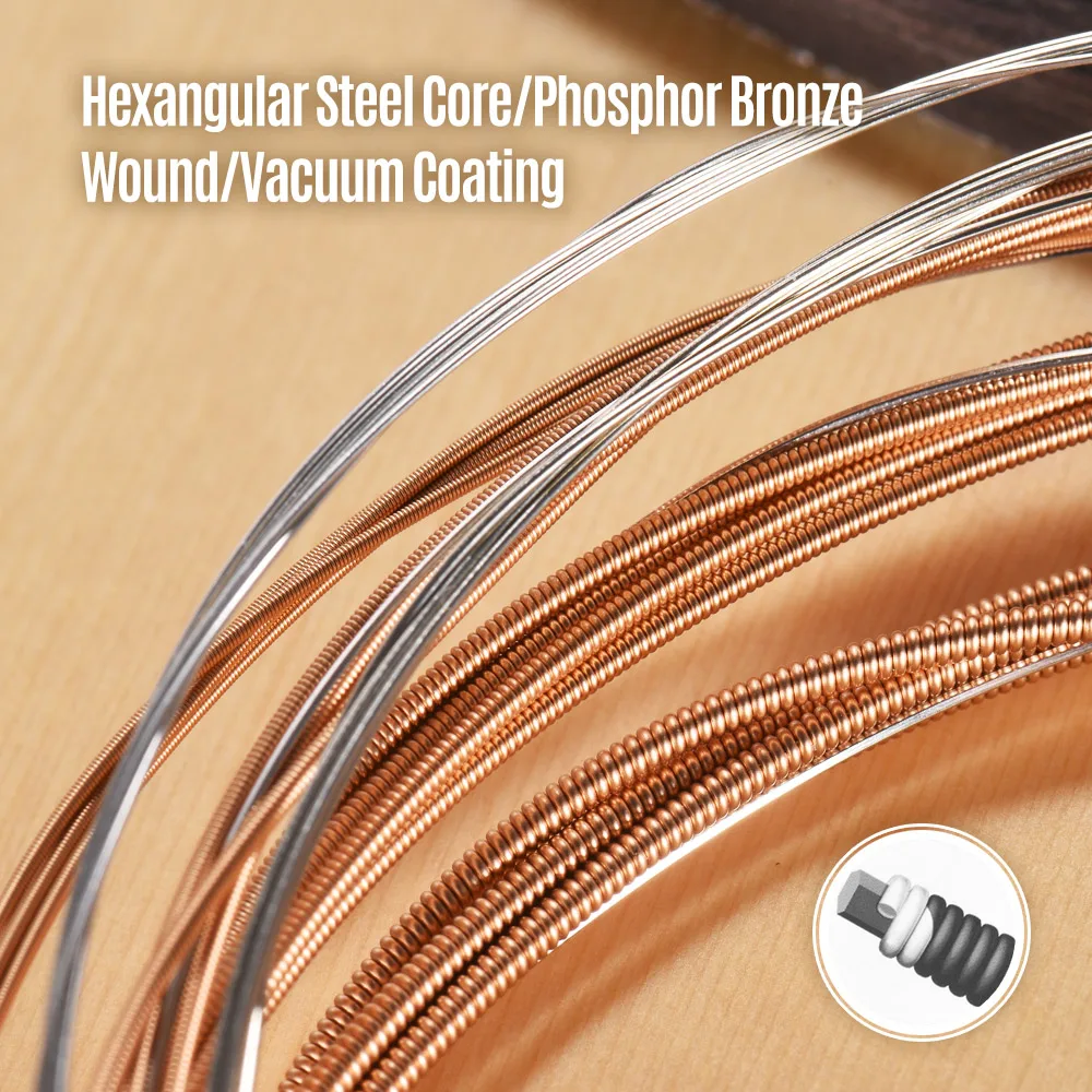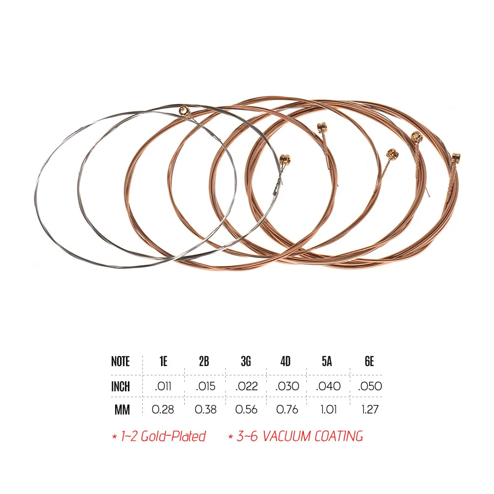 1-я и 2-я струны покрыты серебром для эффективного предотвращения ржавчины; 3rd-6-я струны намотаны фосфорным медным материалом, с тембром сильного восприятия частиц.