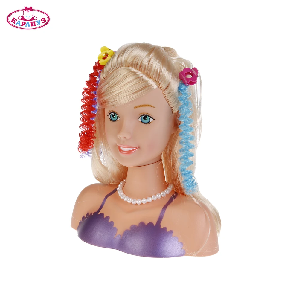 Новинка! Очаровательная кукла-манекен для создания причёсок ТМ «Карапуз» уже стала хитом в списке любимых игрушек девочек по всему миру. Она представляет собой кукольную голову из мягкого материала со светлыми длинными волосами. Кукольное лицо детально прорисовано, на фигуре нарисовано сиреневое платье.