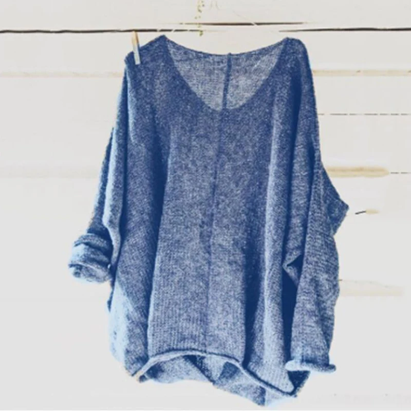 * Описание товара: Женский Повседневный свободный длинный рукав v-образный вырез вязаный пуловер плюс размер футболка Топы
