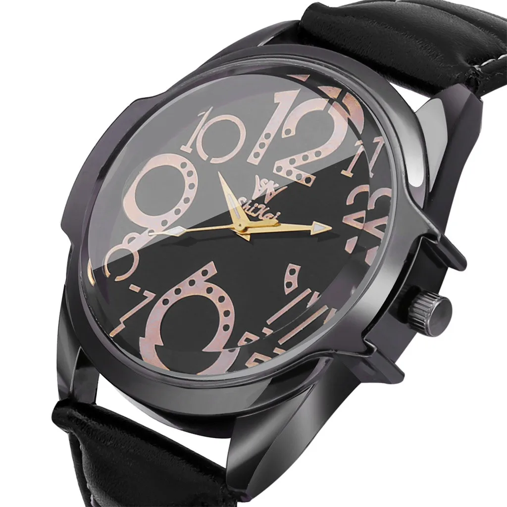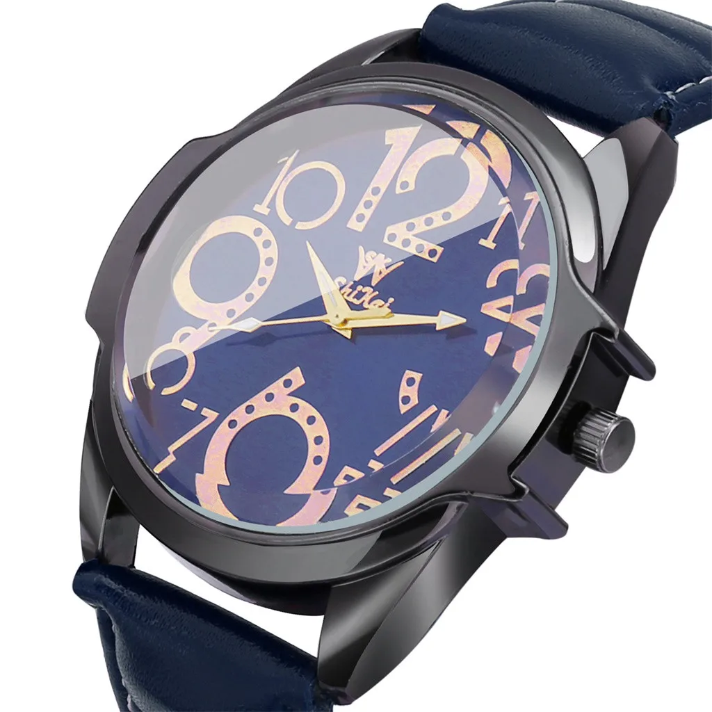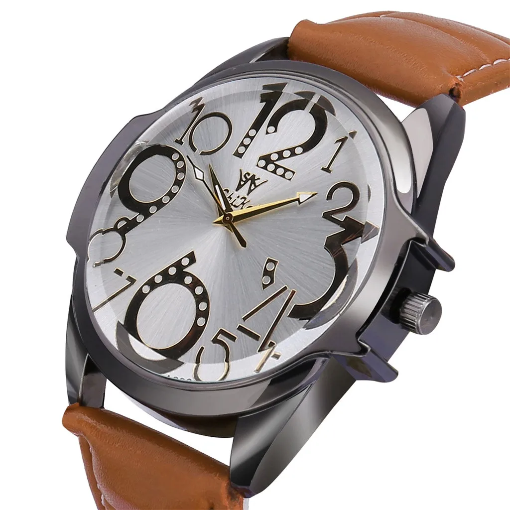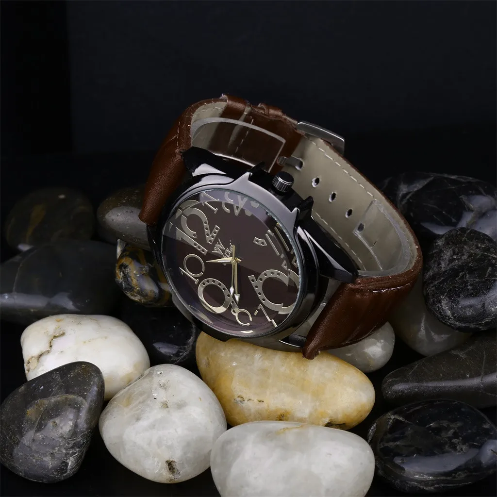 Роскошные мужские часы деловые часы с большим циферблатом модный кожаный ремень кварцевые часы