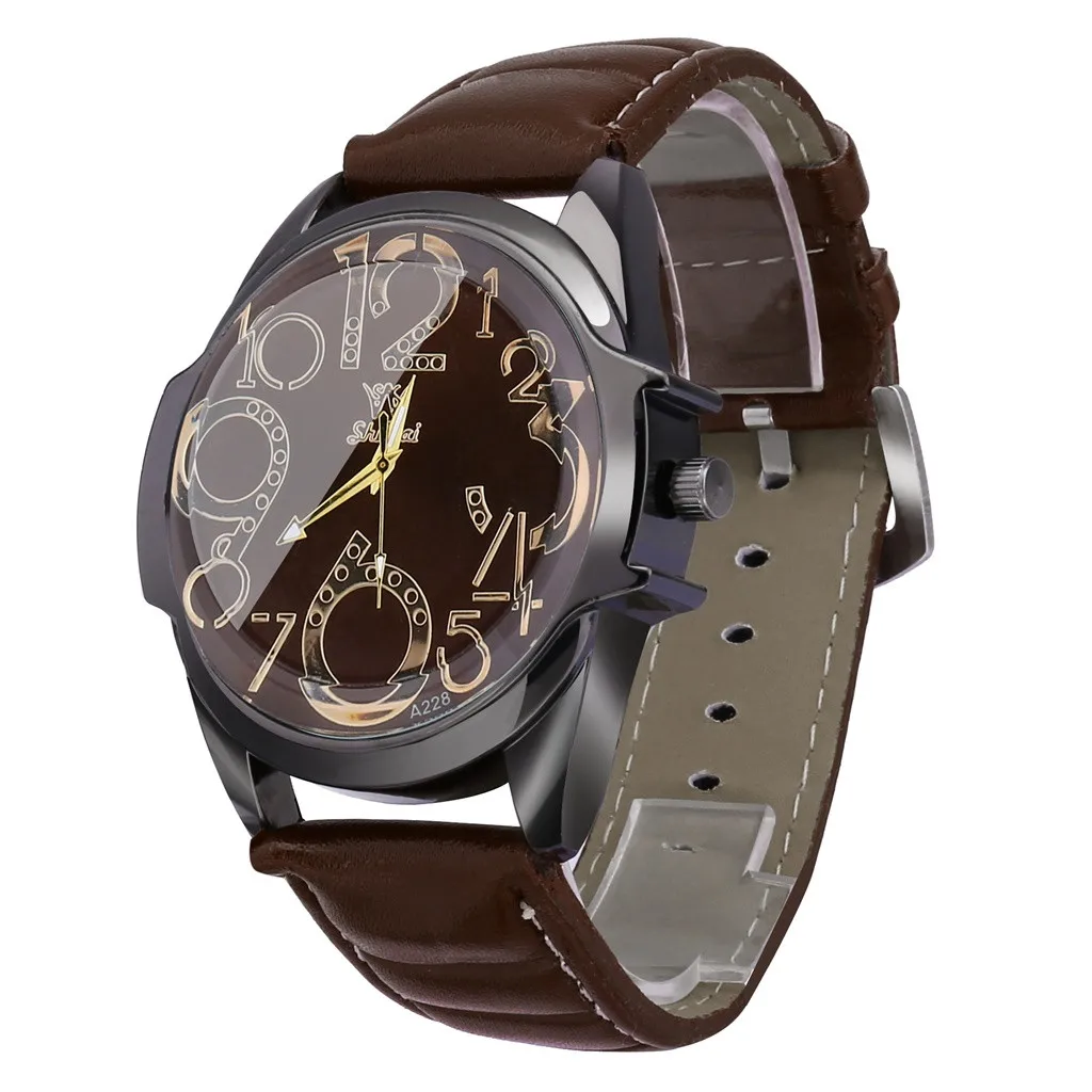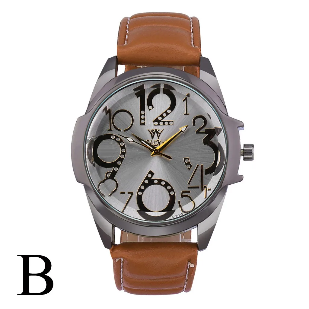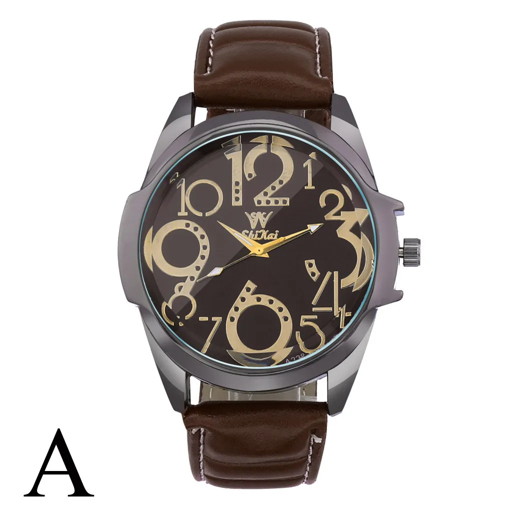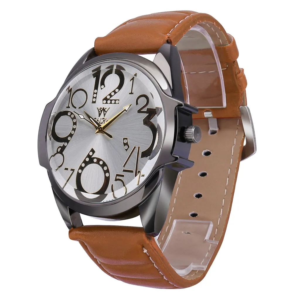 Роскошные мужские часы деловые часы с большим циферблатом модный кожаный ремень кварцевые часы