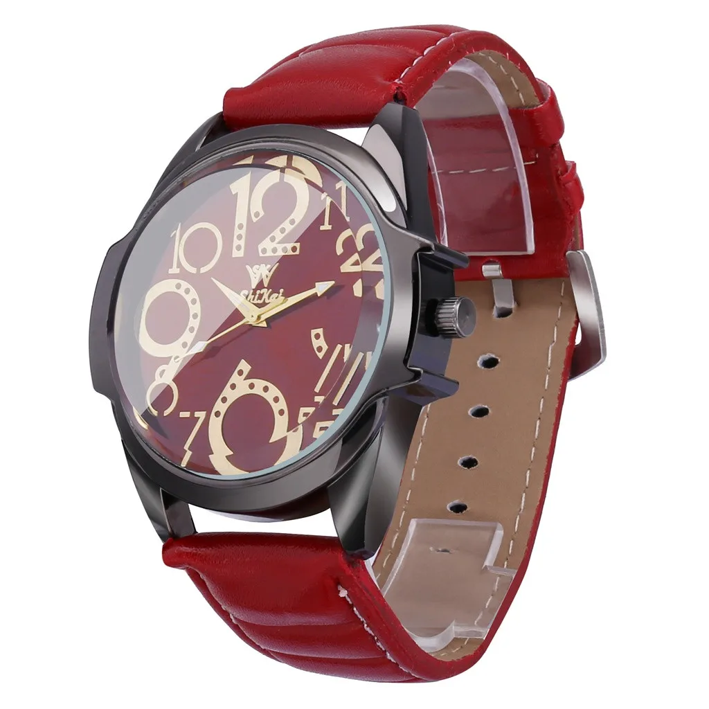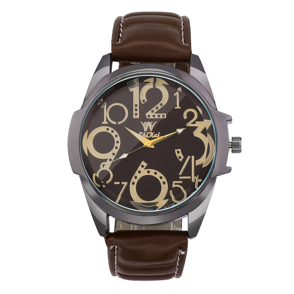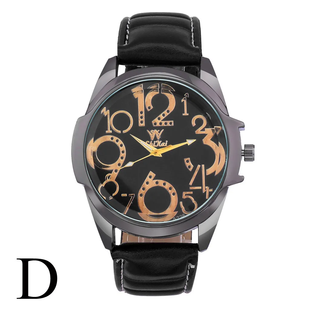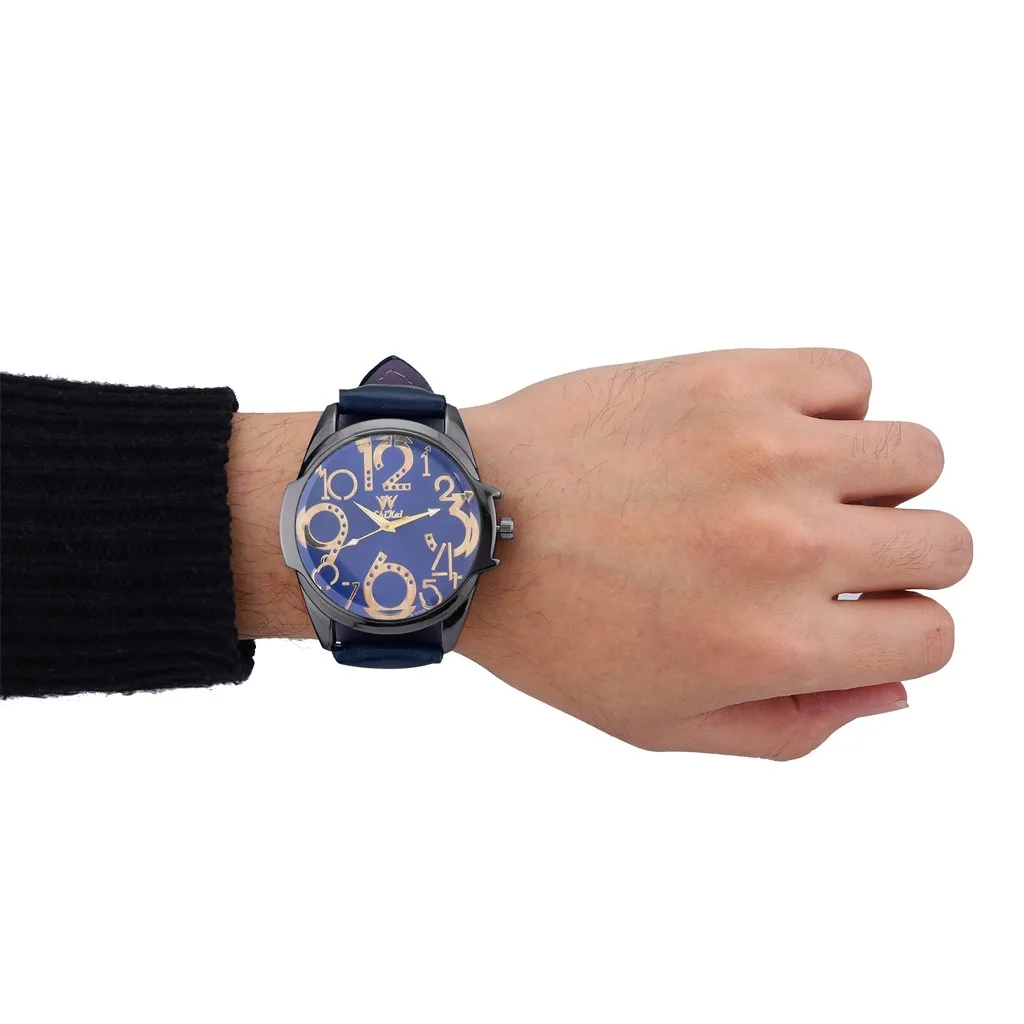 Роскошные мужские часы деловые часы с большим циферблатом модный кожаный ремень кварцевые часы