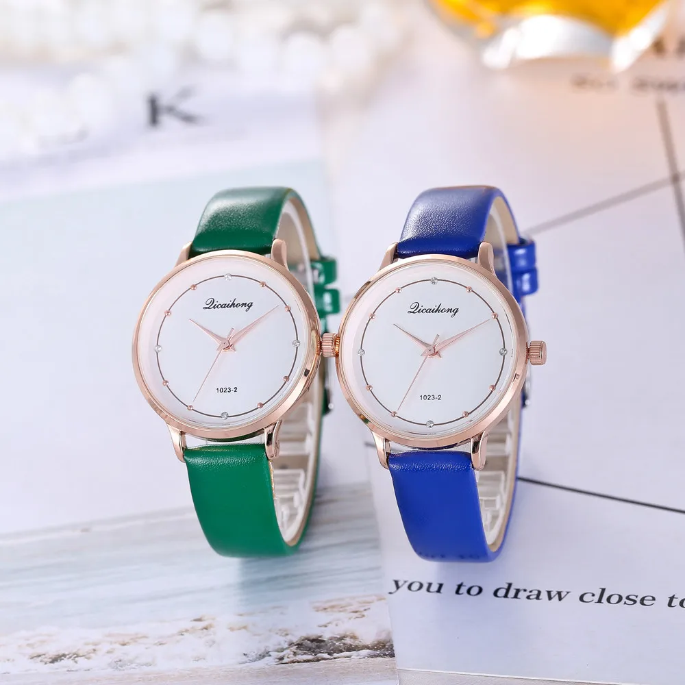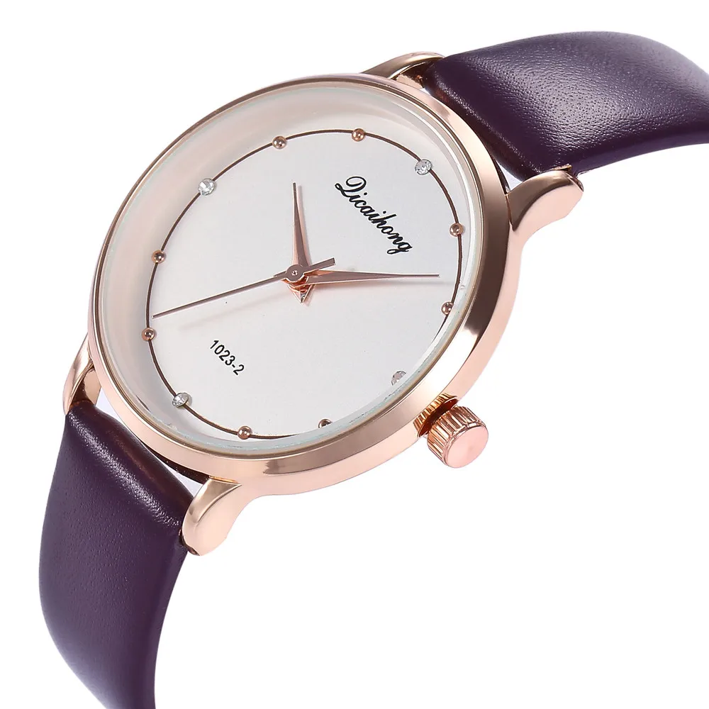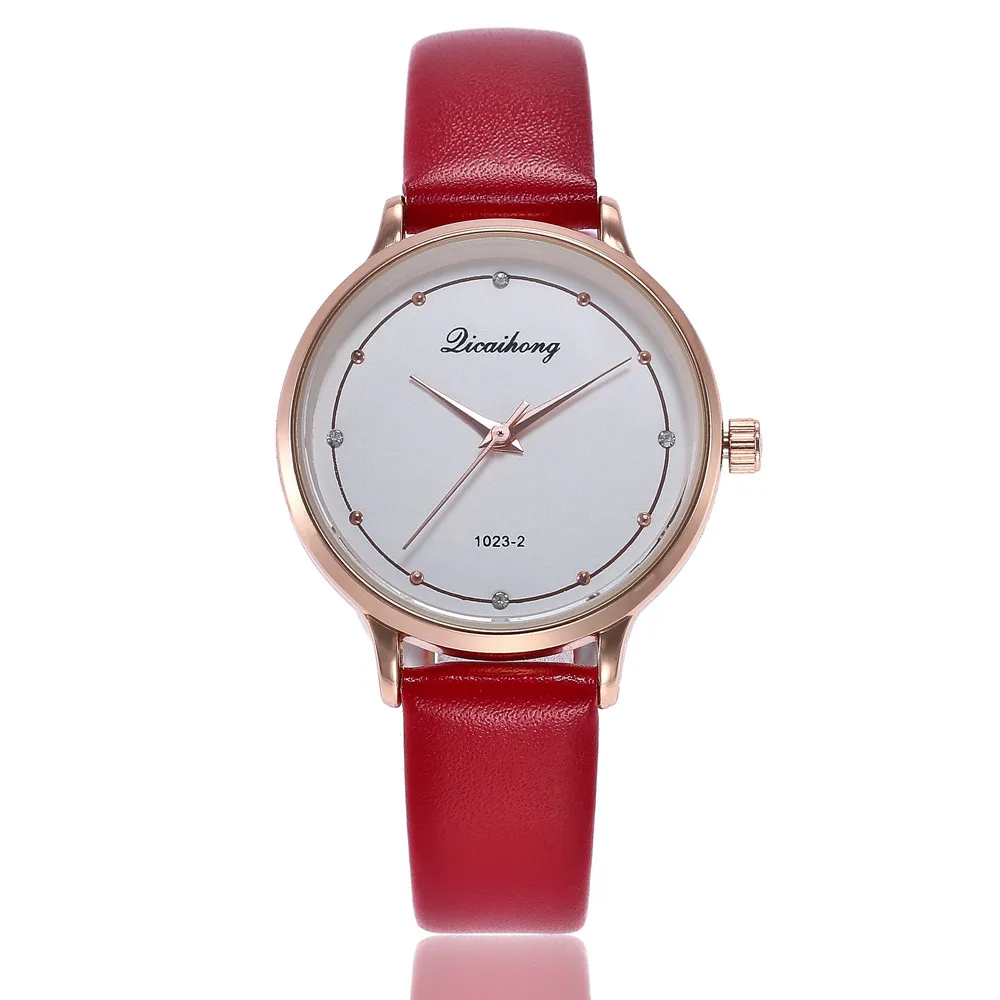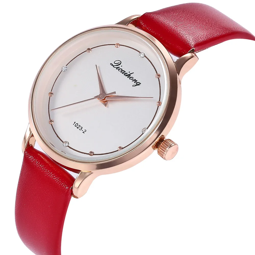Для женщинМодные Аналоговые кварцевые круглые наручные часы с кожаным ремешком
