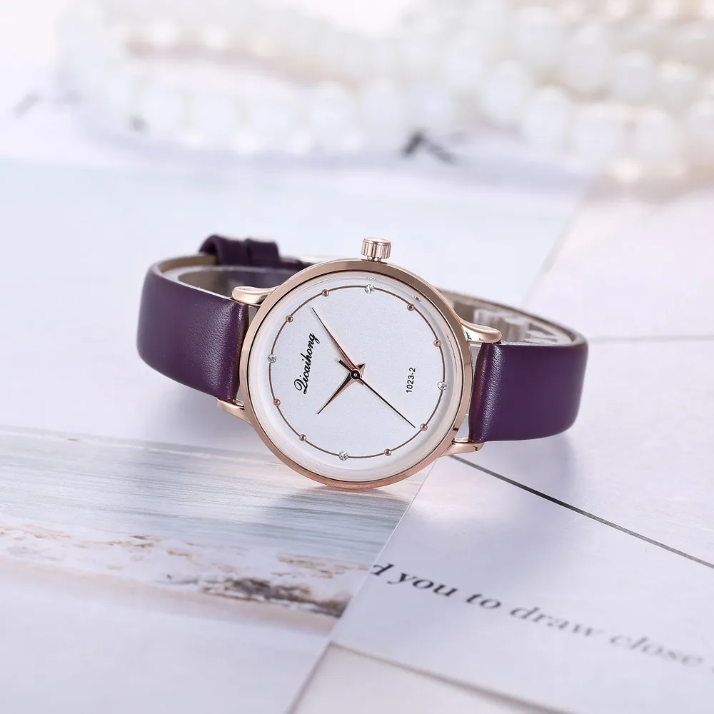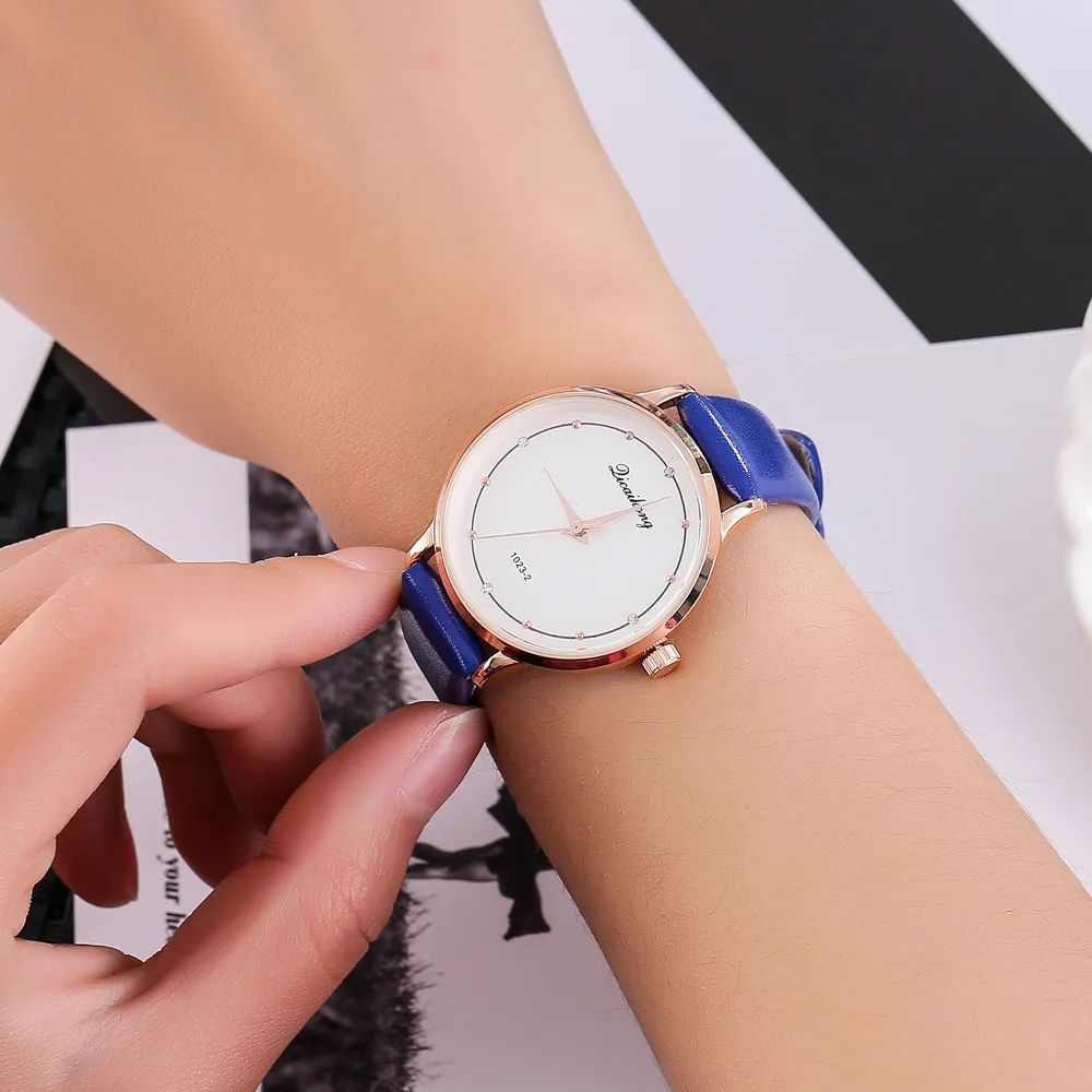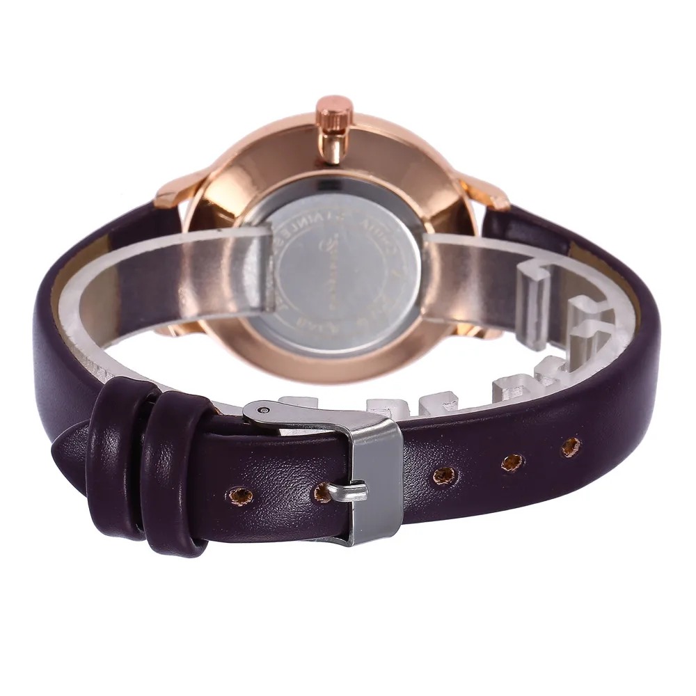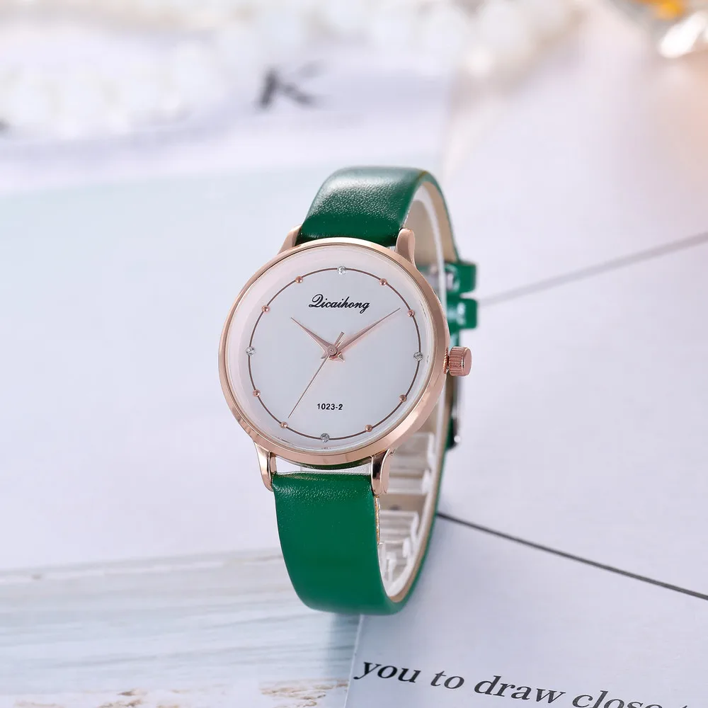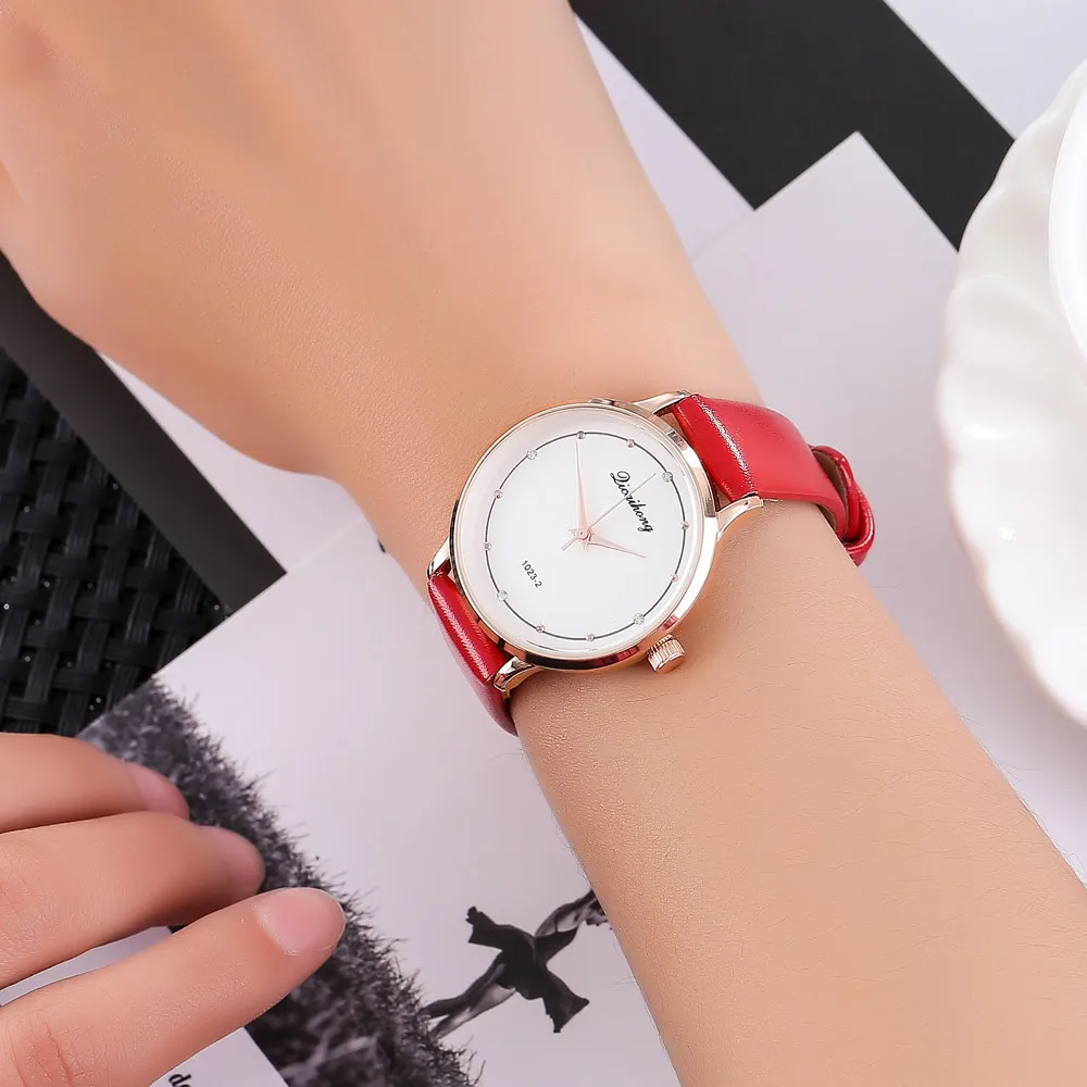 Для женщинМодные Аналоговые кварцевые круглые наручные часы с кожаным ремешком