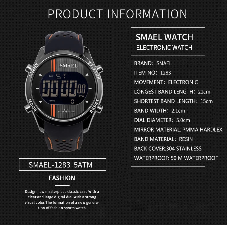 SMAEL спортивные часы мужские 50 м водонепроницаемые аналоговые СВЕТОДИОДНЫЕ Цифровые кварцевые мужские часы наружные наручные часы с хронографом 1283 relogio masculino