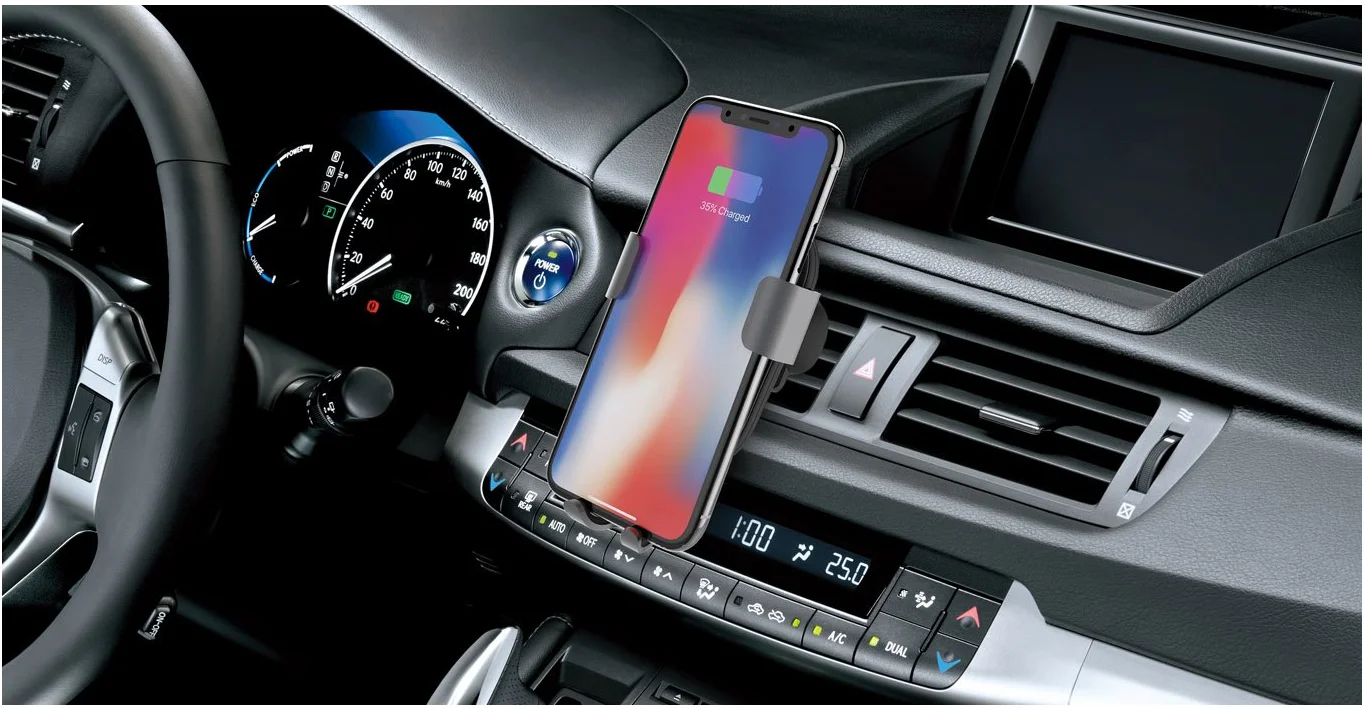 Wireless charger and car phone mount are combined as one. Power your device on the road without the need for messy cables inside your vehicle.